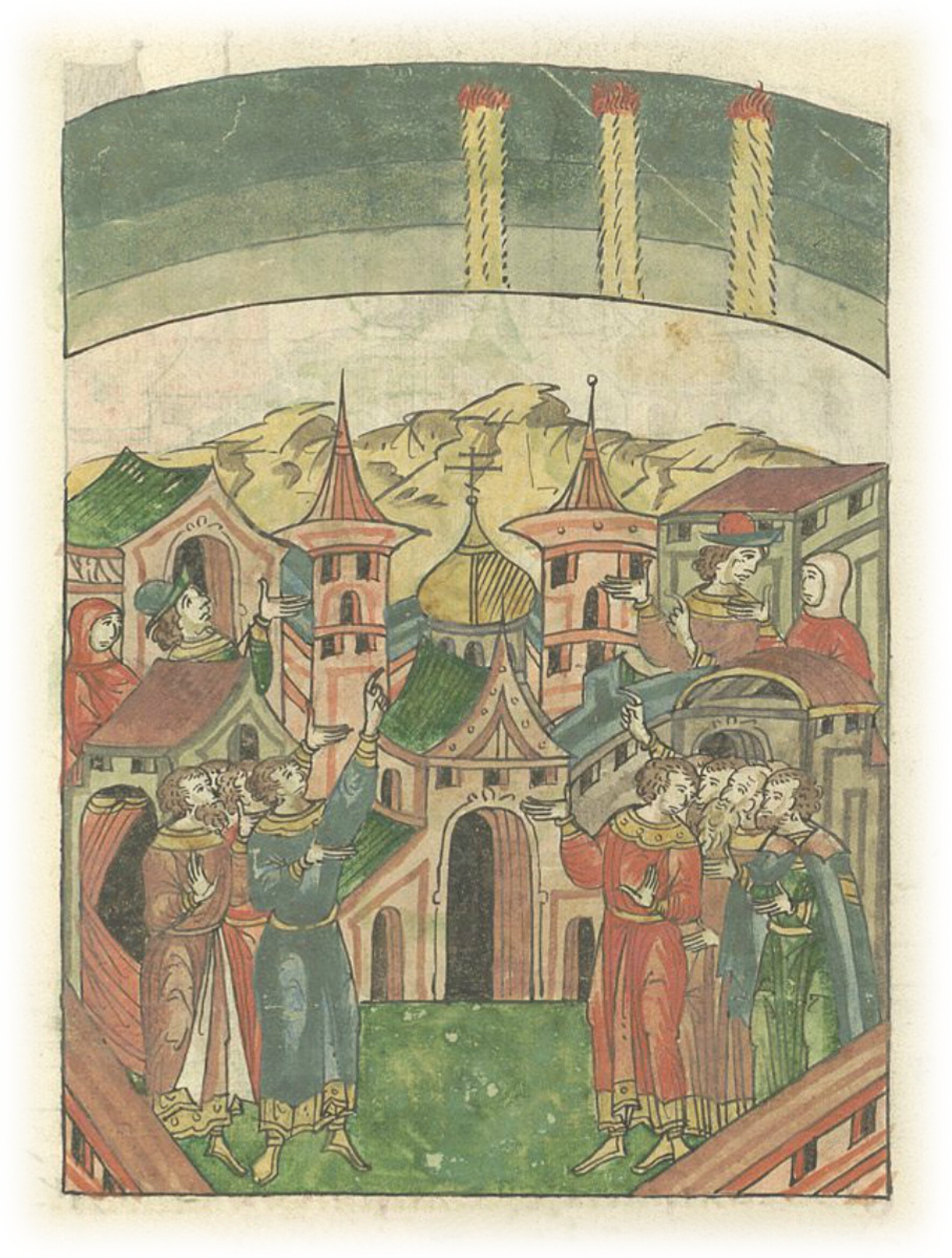 В том же году месяца августа ночью накануне Успения Пречистой Богородицы от полуночи до рассвета видны были столбы кровавые на концах, страшно было это видеть.