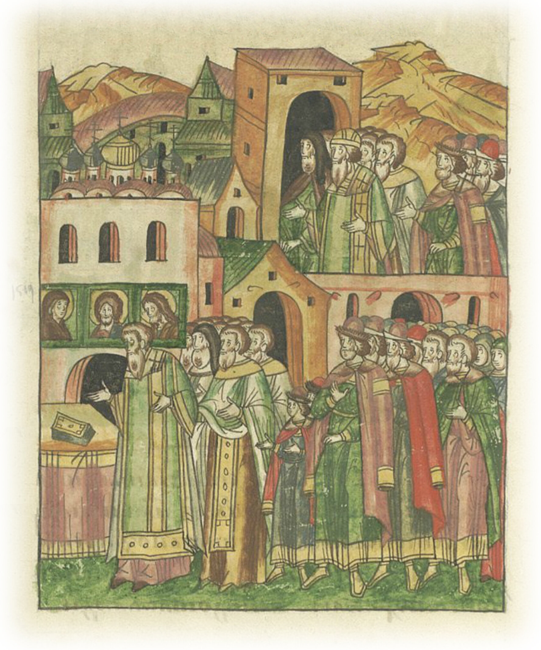 И возвратились обратно в город, собрались в церкви, приложился митрополит Киприан к иконам,