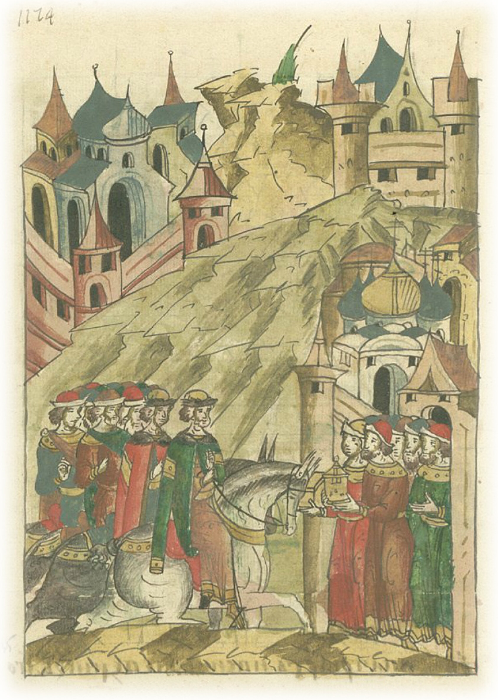 Князь Василий Иванович Смоленский и Патрикий Наримантович, внук Гедимина Литовского, приходят в Новгород, где их встречают с честью.