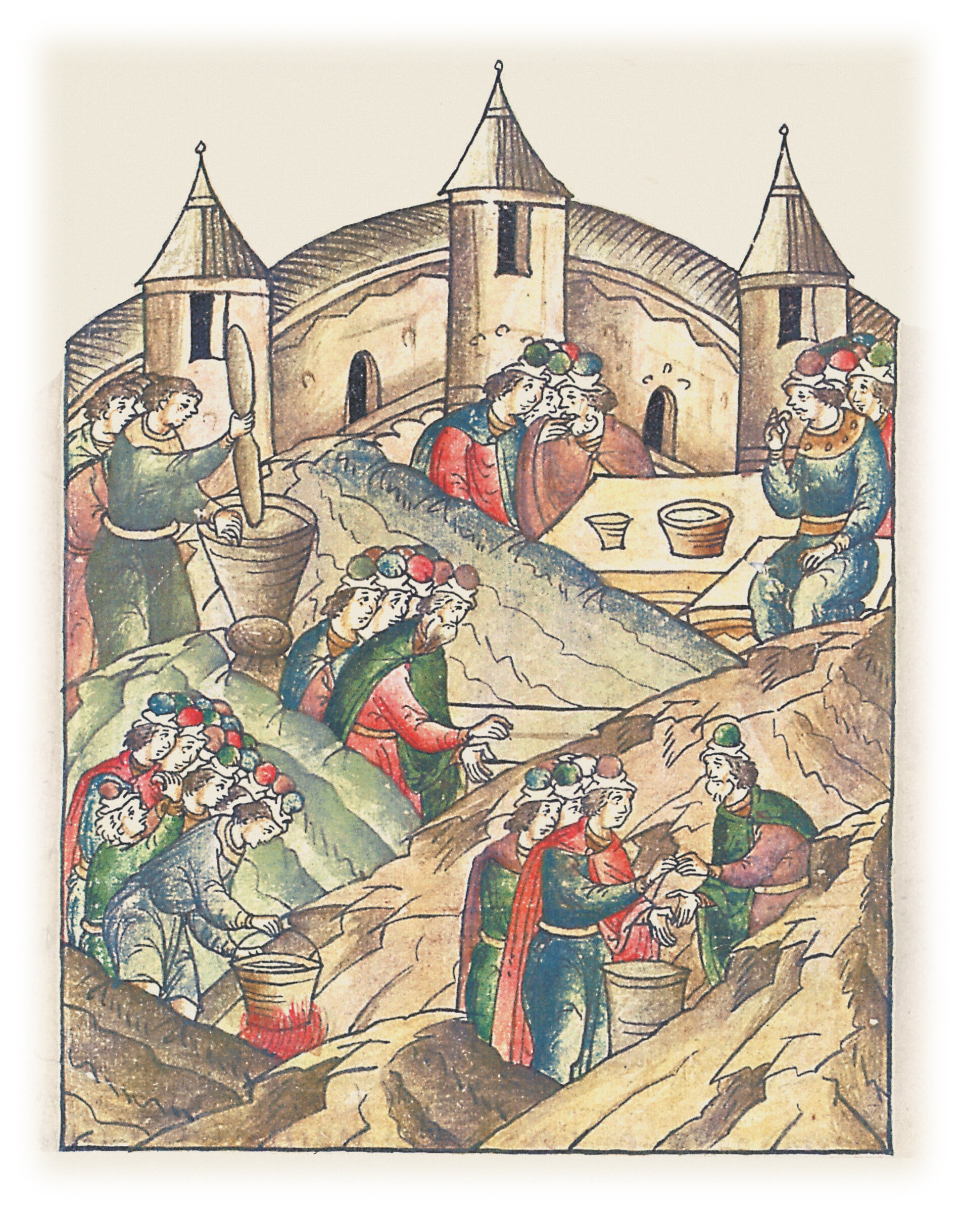 В том же году в Новгороде был голод великий, осминка ржи была по гривне. И люди ели лист липовый и кору березовую, а иные молиц* толкли и мешали с полынью и с соломою, а иные ужей, мох, конину. * древесная мякоть, источенная червями.