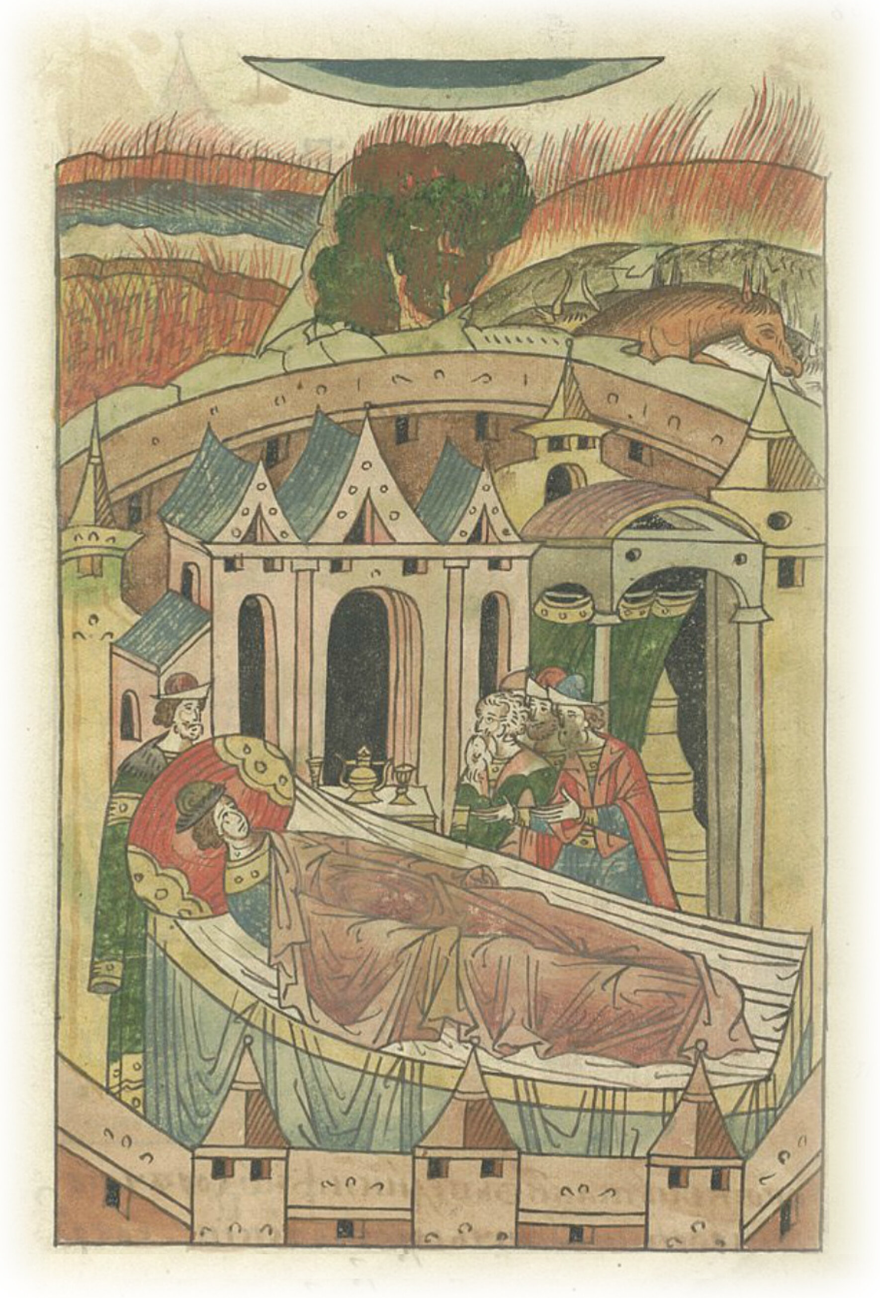 В том же году была болезнь тяжкая очень у великого князя Михаила Ярославича Тверского. В том же году засуха была великая, и загорелись леса и боры, и болота, мхи, поля. И была нужда великая. И был мор на скот.