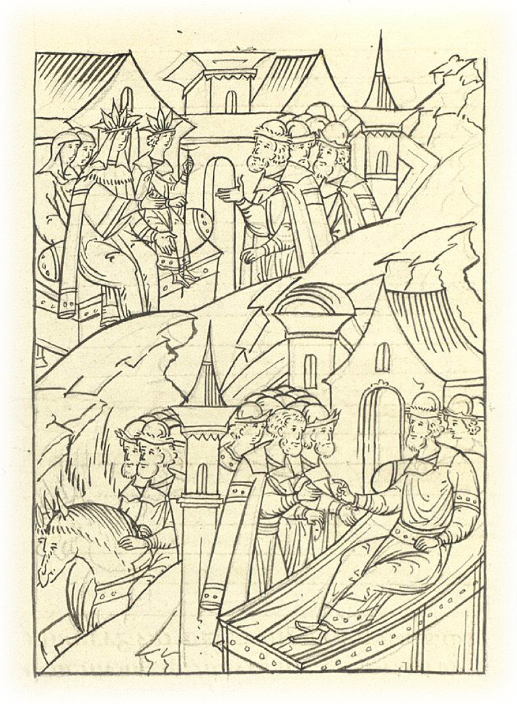 Ругодивские посадники Яким и Захар приезжают в Москву. Воеводы царя Ивана Васильевича Алексей Адашев и Иван Михайлов сообщают им, что государь пожалует их, если сдадут его воеводам помимо Ругодива Вышгород.