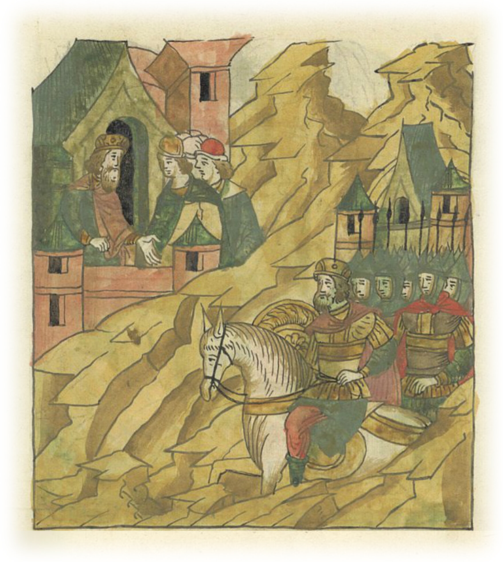 Языки говорят воеводам царя Ивана Васильевича, что магистр окопался большим рвом вокруг города Рындола, бьет из пушек и пищалей и приступает к Рындолу.