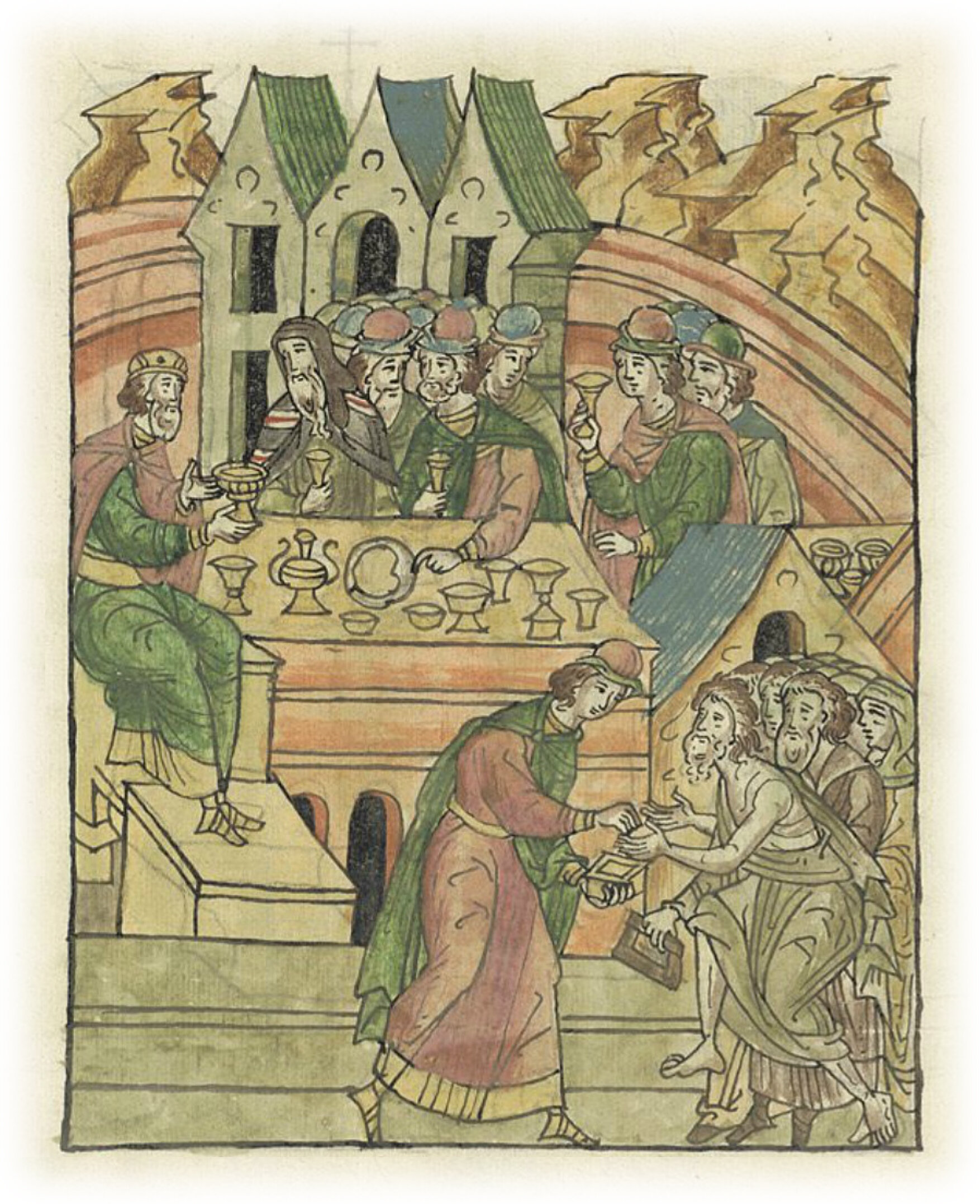И устроили пир великий, и князь чествовал епископа, а бояр и всех людей угощал, и милостыню нищим и убогим дал; ибо таков обычай был у того князя, более всего любовь и милость иметь ко всем.