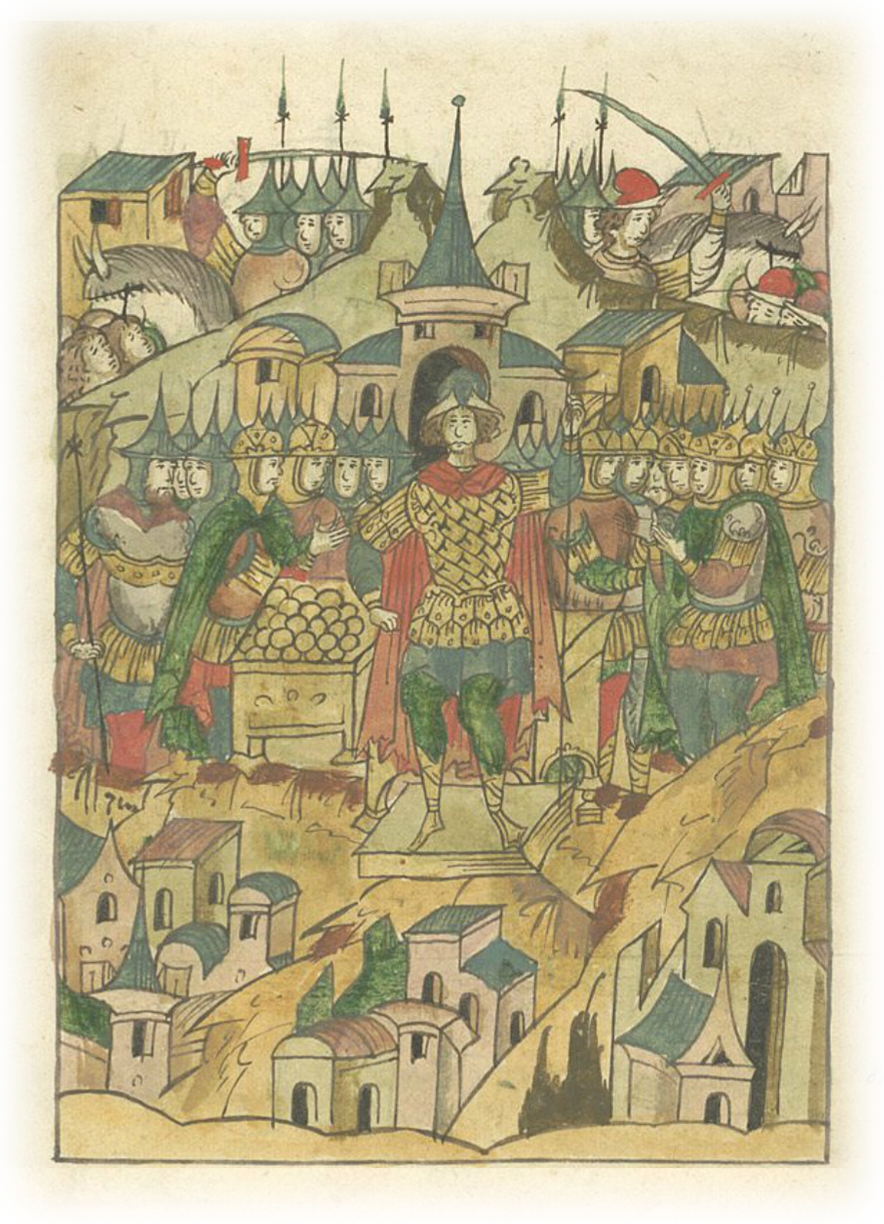 После этого он покорил все окрестные страны, приобретя огромные богатства, весь восток разорил и чуть всю Элладу не покорил.