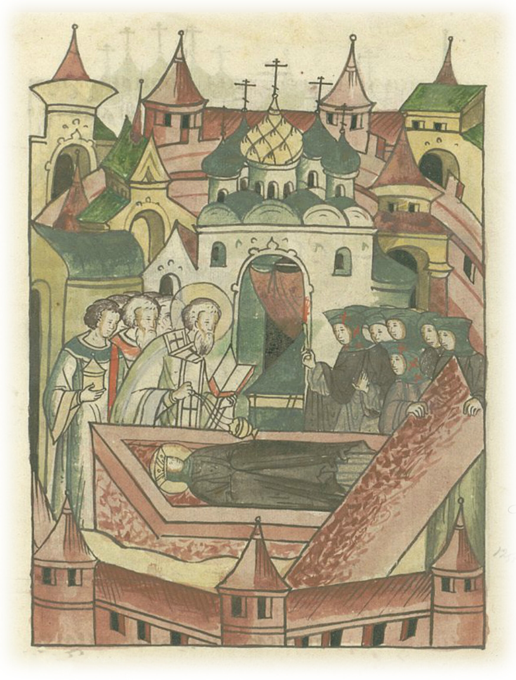 К Богу преставилась с миром в 6908 (1400) году месяца июня в 7 день, была похоронена в своем монастыре в церкви Вознесения Господня, приняла наслаждение вечных благ и Небесного Царствия.