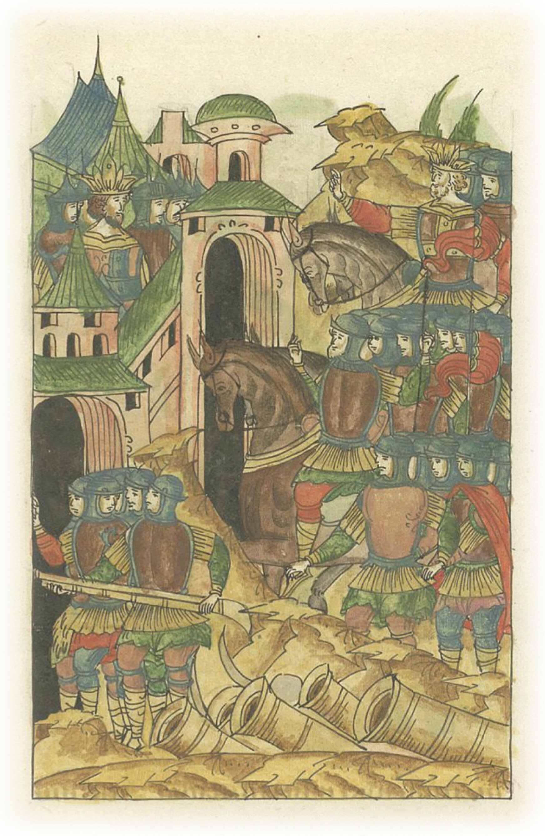 Потом напустил Балтаулиапашу со многими полками, а на царя послал три тысячи избранных и повелел им постараться захватить царя, или сами будут убиты, или из пищалей убьют его.