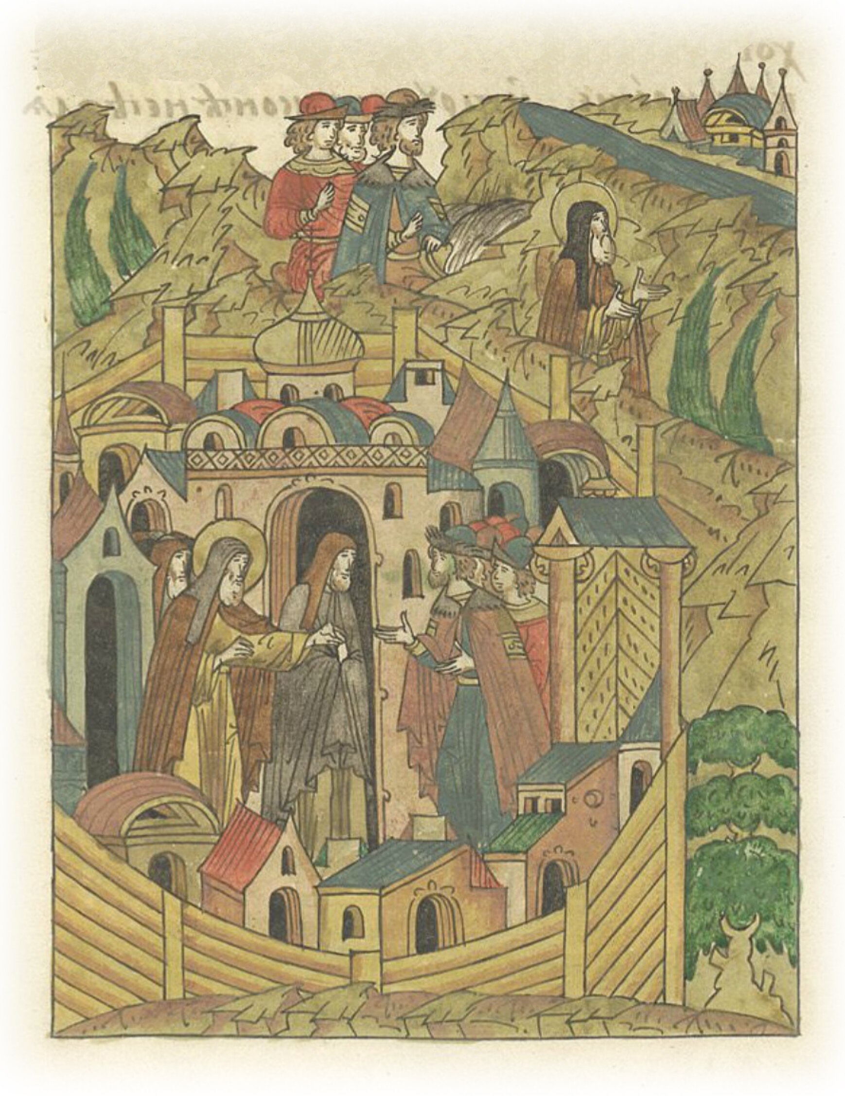 Повесть о преподобном Сергии Радонежском. Об Афанасии, ученике преподобного Сергия Радонежского. Князь Владимир Андреевич просит у Сергия его ученика Афанасия и также просит самого Сергия пойти с ним и основать монастырь близ города Серпухова.