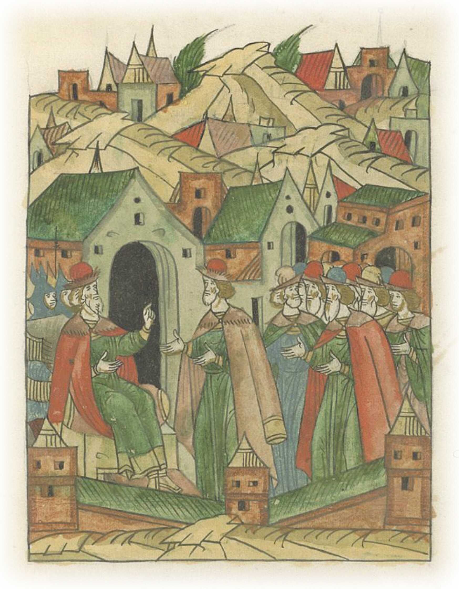 Ругодивские посадники Яким и Захар приезжают в Москву. Воеводы царя Ивана Васильевича Алексей Адашев и Иван Михайлов сообщают им, что государь пожалует их, если сдадут его воеводам помимо Ругодива Вышгород.