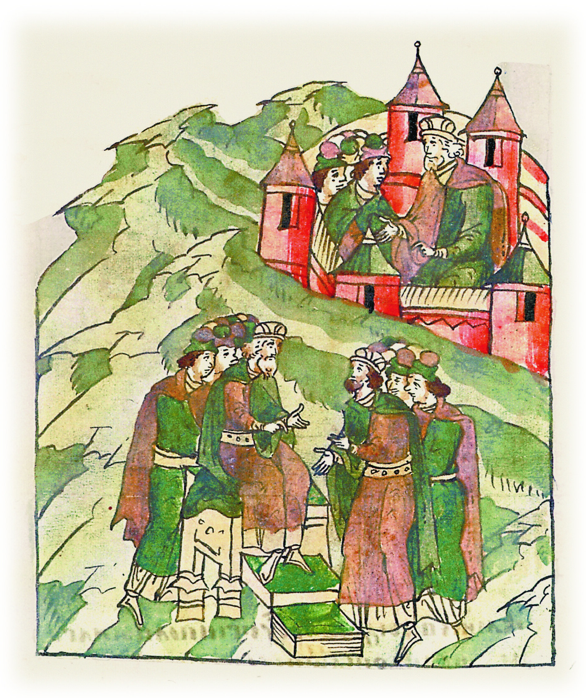 Ругодивские посадники Яким и Захар приезжают в Москву. Воеводы царя Ивана Васильевича Алексей Адашев и Иван Михайлов сообщают им, что государь пожалует их, если сдадут его воеводам помимо Ругодива Вышгород.
