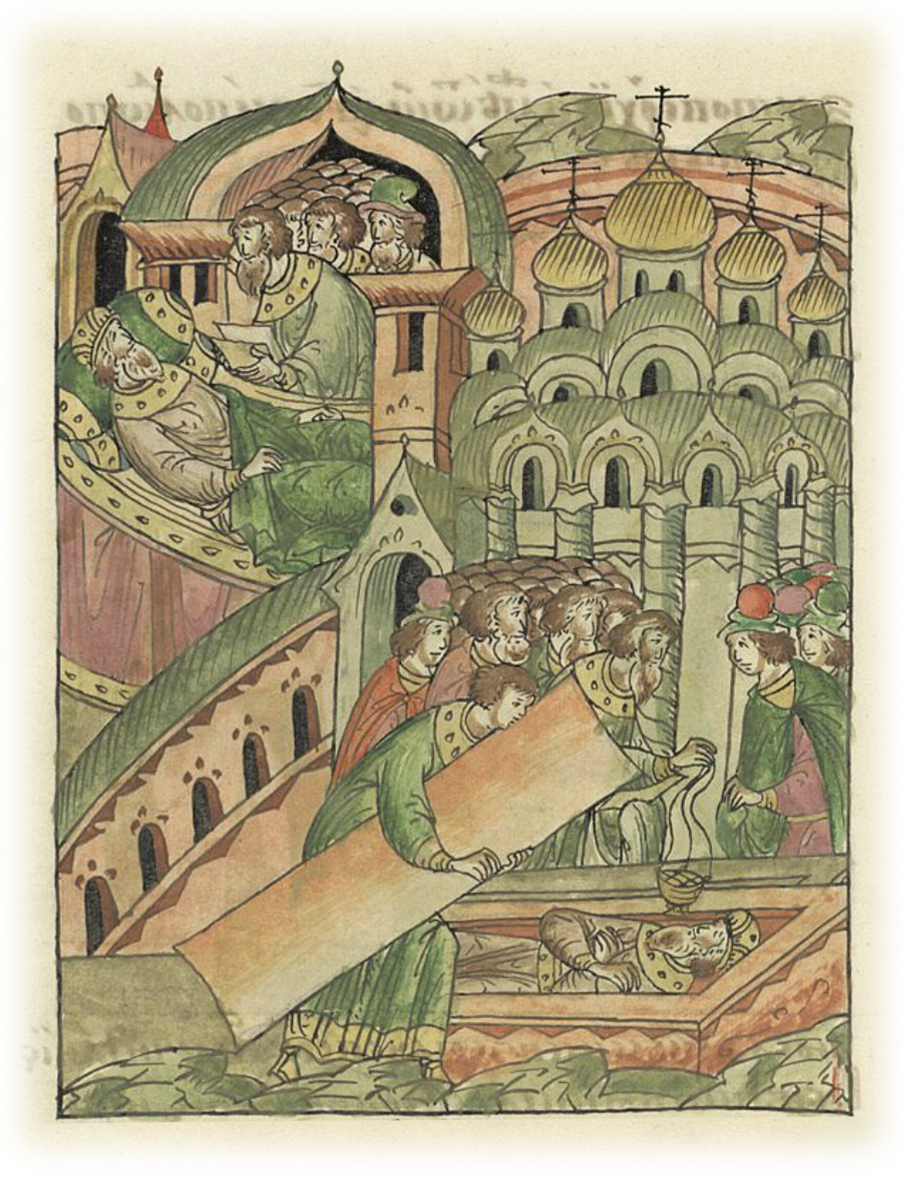Кончина великого князя Константина Всеволодовича и его похороны в церкви пречистой Богородицы Златоверхой.