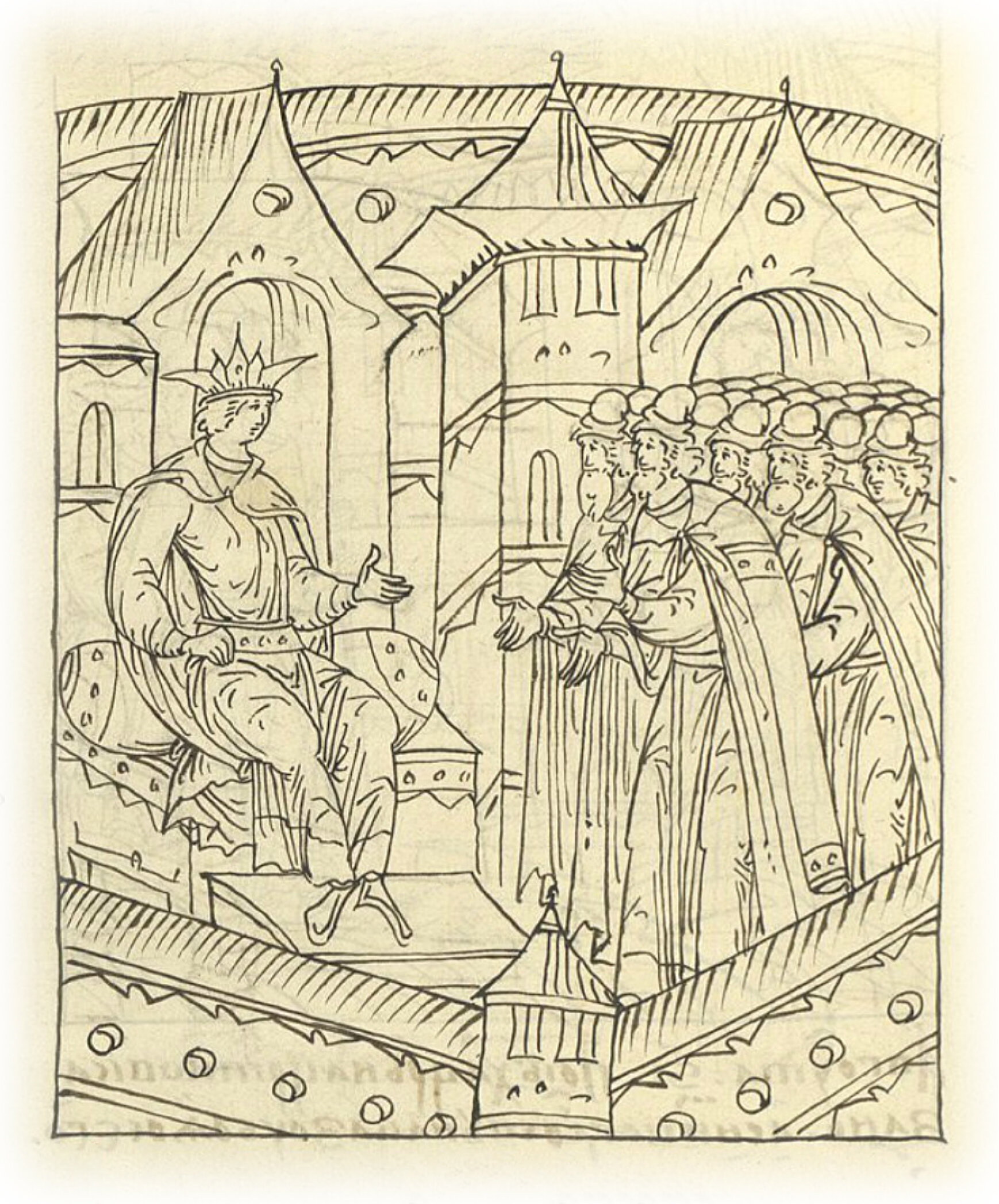 Бояре царя Ивана Васильевича приезжают к царю Шигалею с тем, чтобы он собрал русский полон, находящийся в городе, и освободил.