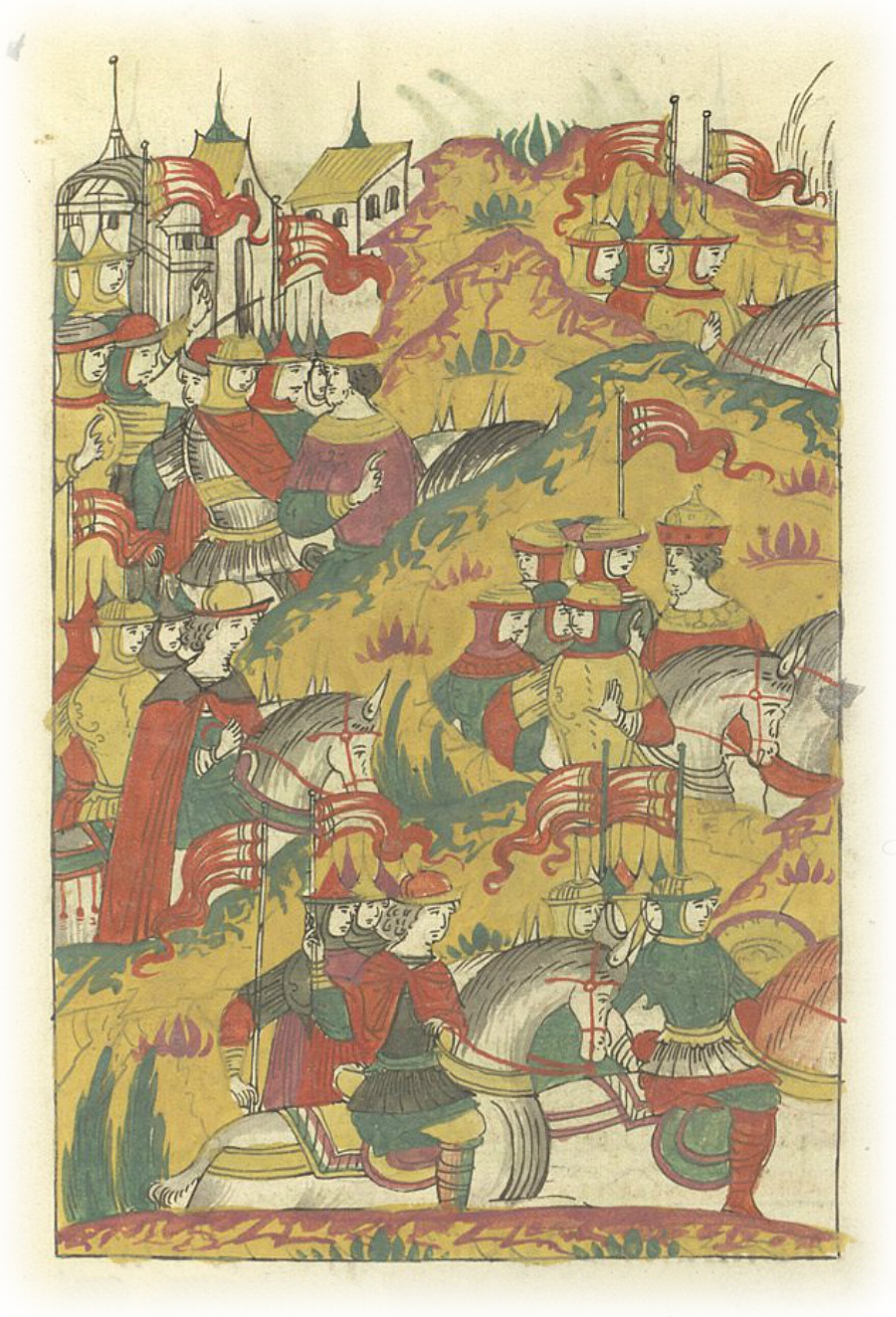 Воеводы приказывают передовому отряду сражаться с магистром, в то время как другие полки обходят крепость.