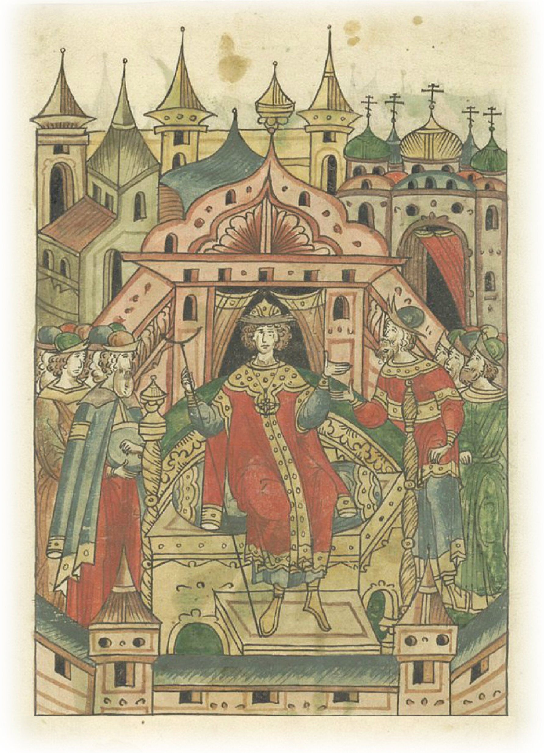 Князь Василий Дмитриевич садится на великое княжение Владимирское. На престол его возводит посол царя Тохтамыша Шиахмат.