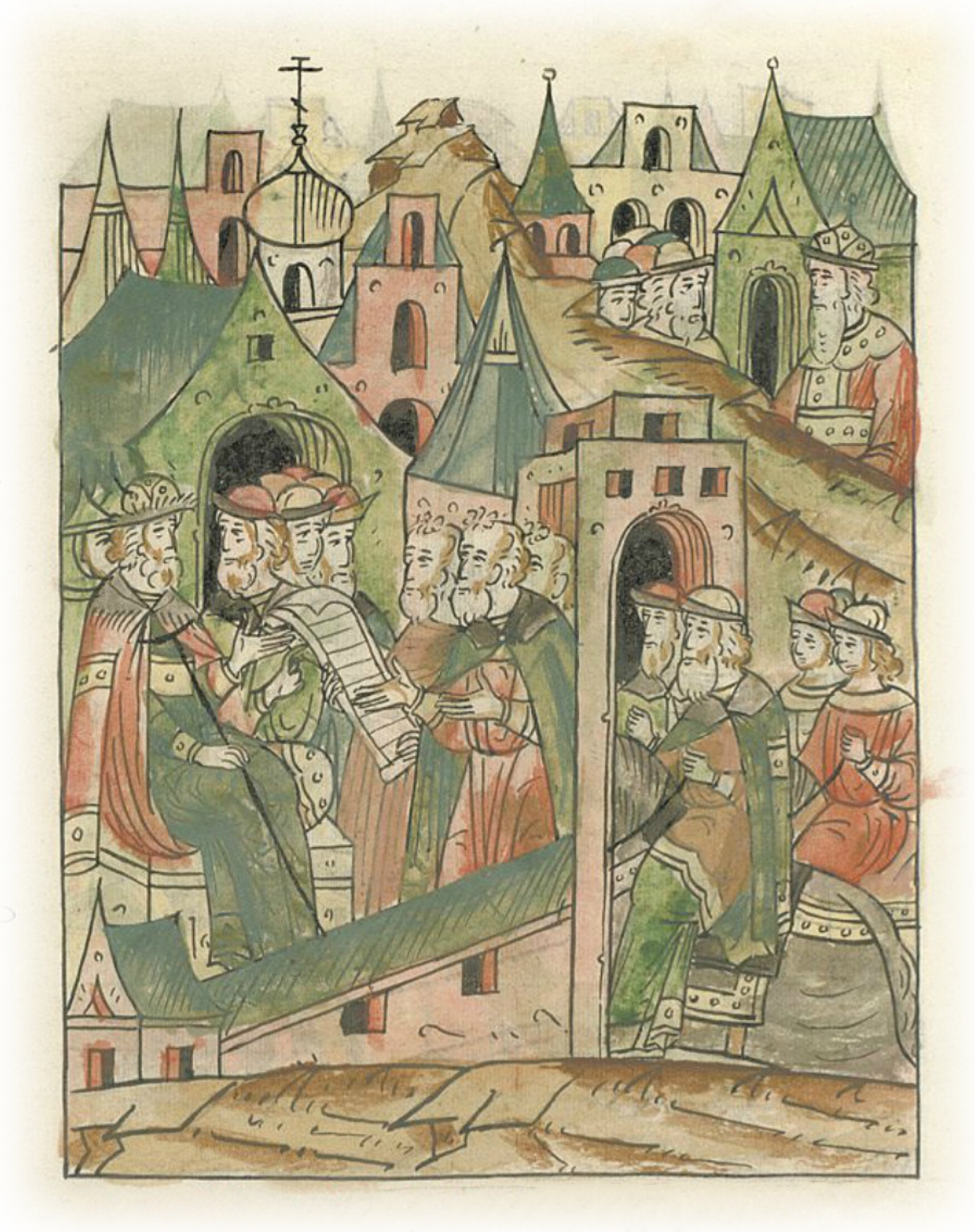 Ругодивские посадники Яким и Захар приезжают в Москву. Воеводы царя Ивана Васильевича Алексей Адашев и Иван Михайлов сообщают им, что государь пожалует их, если сдадут его воеводам помимо Ругодива Вышгород.