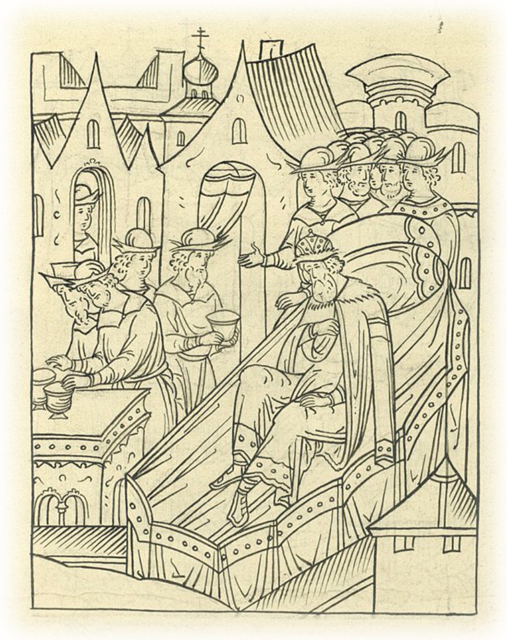 Ругодивские посадники Яким и Захар приезжают в Москву. Воеводы царя Ивана Васильевича Алексей Адашев и Иван Михайлов сообщают им, что государь пожалует их, если сдадут его воеводам помимо Ругодива Вышгород.