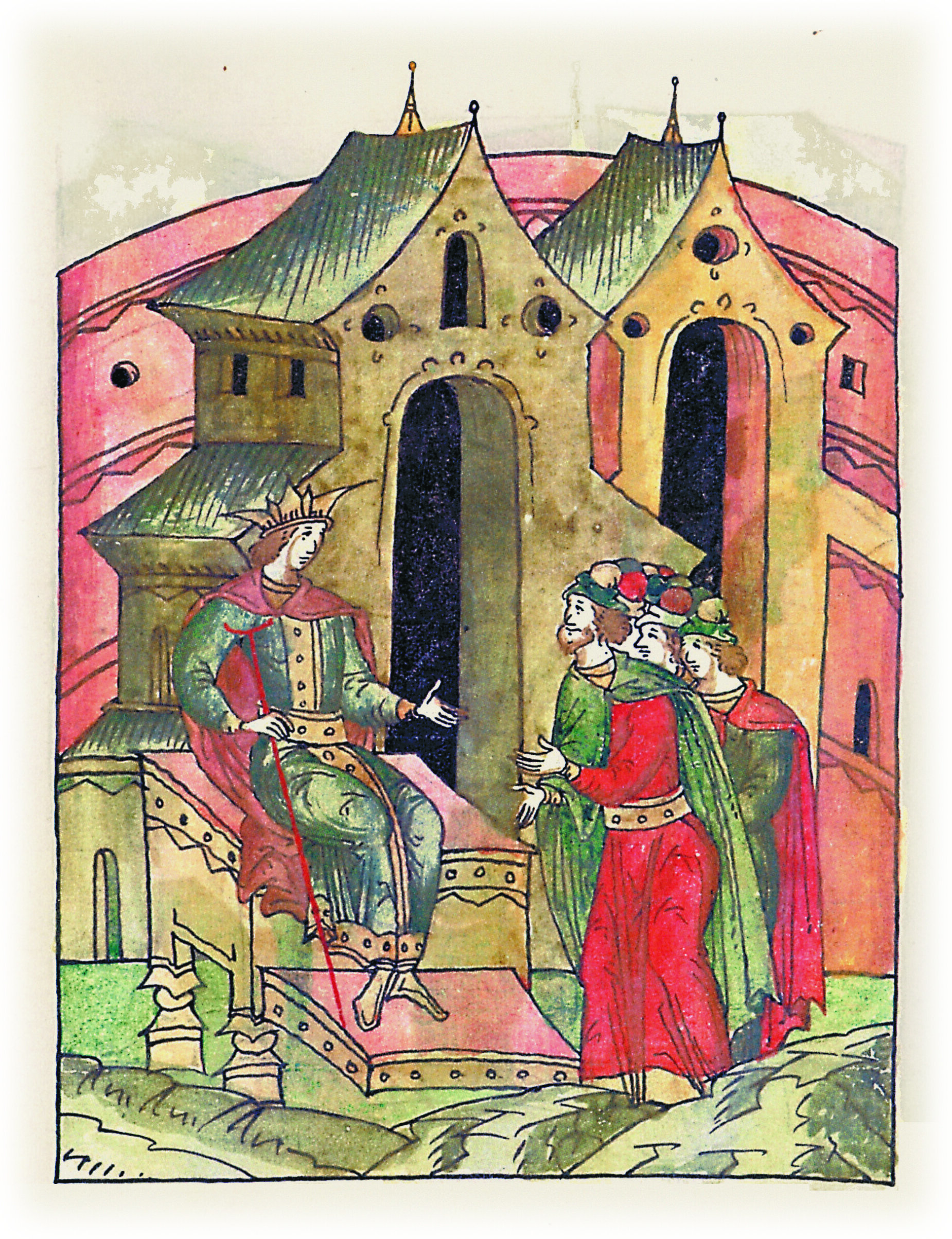 Ругодивские посадники Яким и Захар приезжают в Москву. Воеводы царя Ивана Васильевича Алексей Адашев и Иван Михайлов сообщают им, что государь пожалует их, если сдадут его воеводам помимо Ругодива Вышгород.