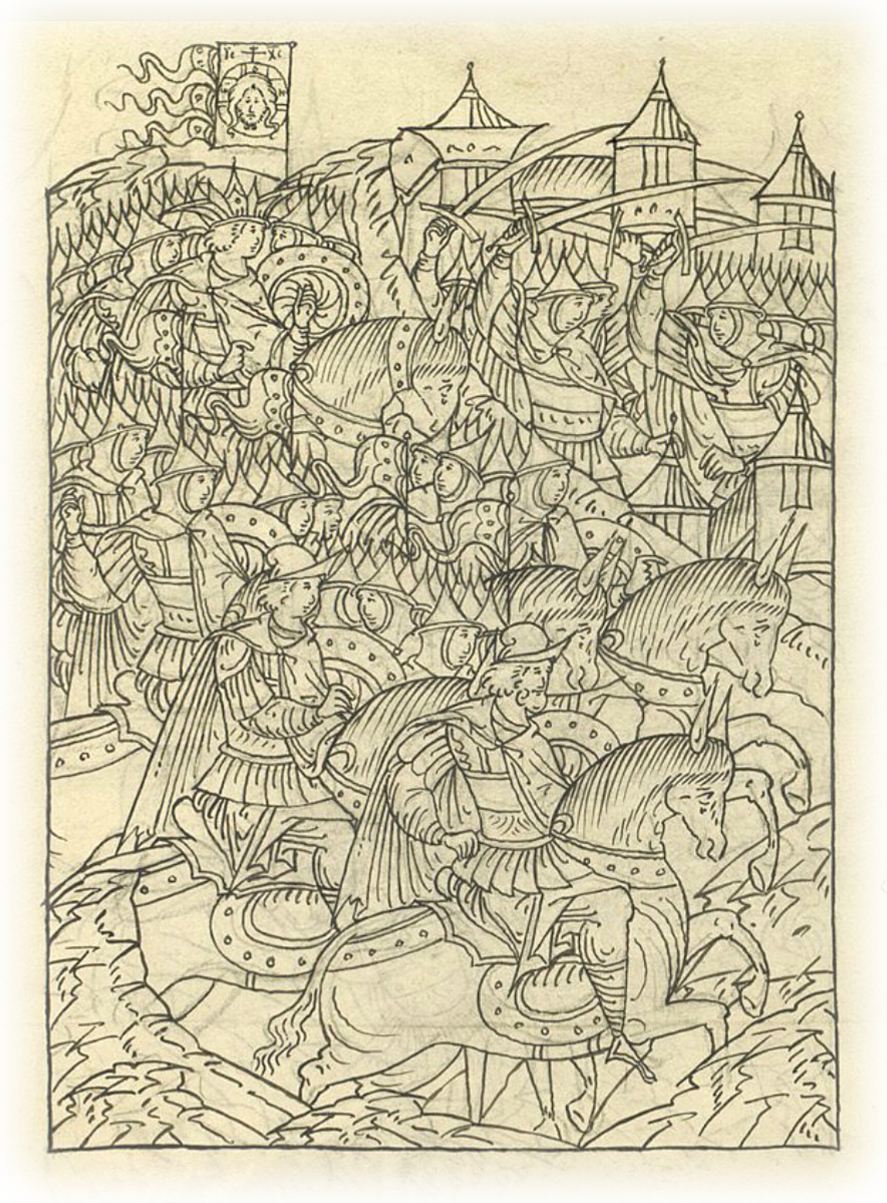 И приехал самодержец в полк свой и во все стороны посылает гонцов, укрепляя воинов.