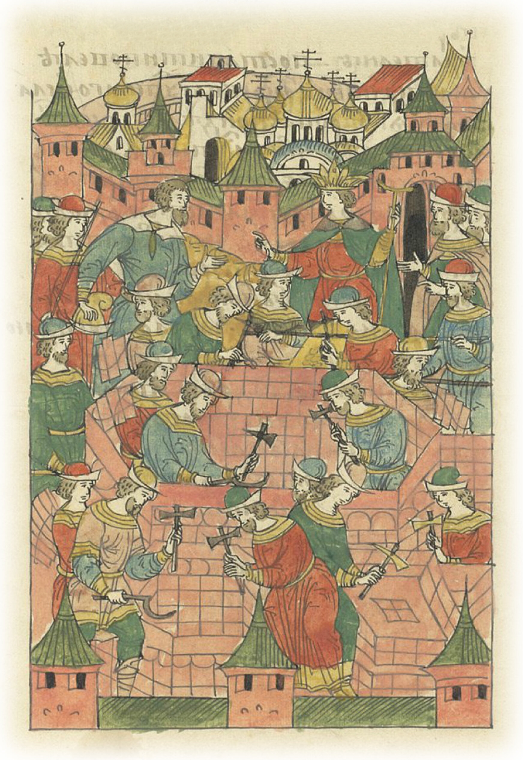 О поставлении храма Покрова пресвятой Богородицы. Той же осенью в октябре месяце благоверный и христолюбивый царь и великий князь Иван Васильевич, всея Руси самодержец, с великою верою и со многим желанием тщательно поставить повелел храм пречистой царицы Богородицы честного и славного Ее Покрова с приделами о Казанской победе, что милостью ее и молением к Сыну своему и Богу нашему Исусу Христу о роде христианском молится, и помощью ее и святых молитвами и новых чудотворцев русских всемилостивый Бог покорил басурманский род казанских татар царю государю Ивану Васильевичу, самодержцу всея Руси, под его державу. Ибо от прадеда его великого князя Василия Васильевича казанцы учинили себе самовольство.