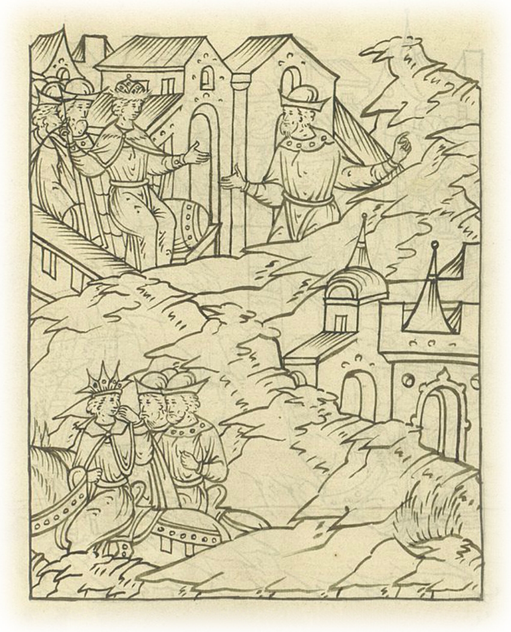 Ругодивские посадники Яким и Захар приезжают в Москву. Воеводы царя Ивана Васильевича Алексей Адашев и Иван Михайлов сообщают им, что государь пожалует их, если сдадут его воеводам помимо Ругодива Вышгород.