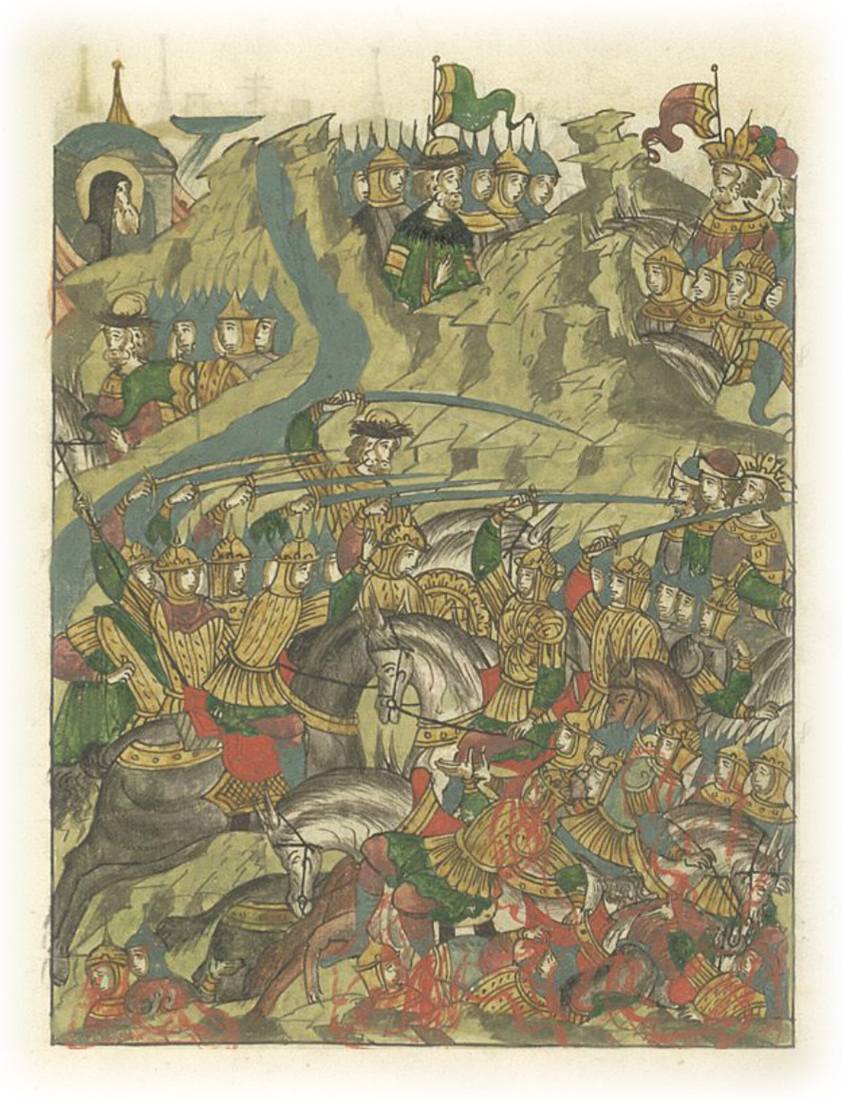 И вскоре выступил против Мамая и его татар. Была сеча великая, и по пророчеству святого побеждены были татары, и избито их множество. И возвратился великий князь благополучно с воинством своим,