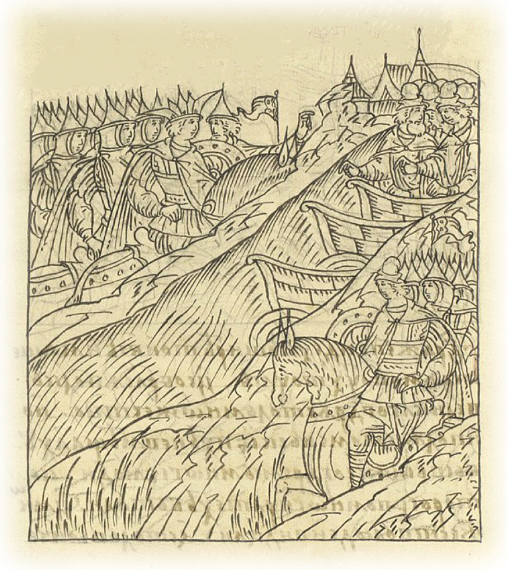И приходит государь к Кашире, и готовят государю перевозы на Оке, а Мстиславский с товарищами уже переправился через реку, и ожидает князь Иван Федорович царского прихода.