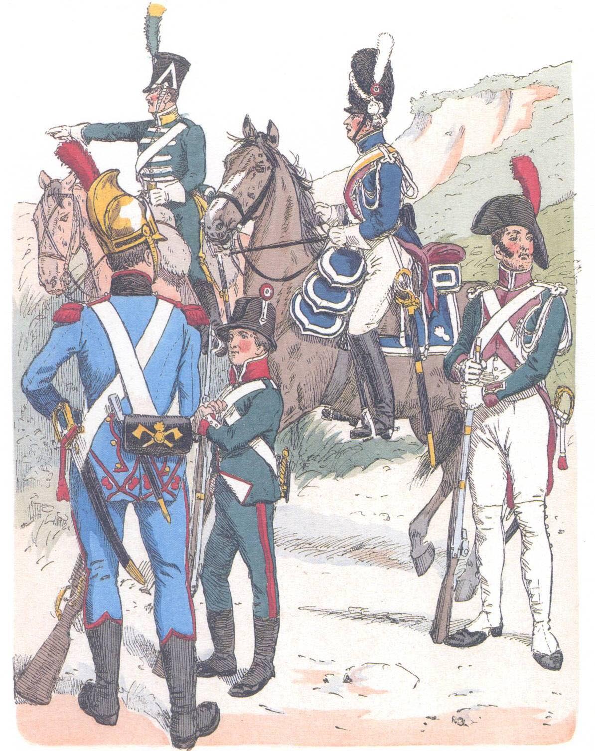 Италия. Конный егерь, жандармы, пожарный и воспитанник (1812)