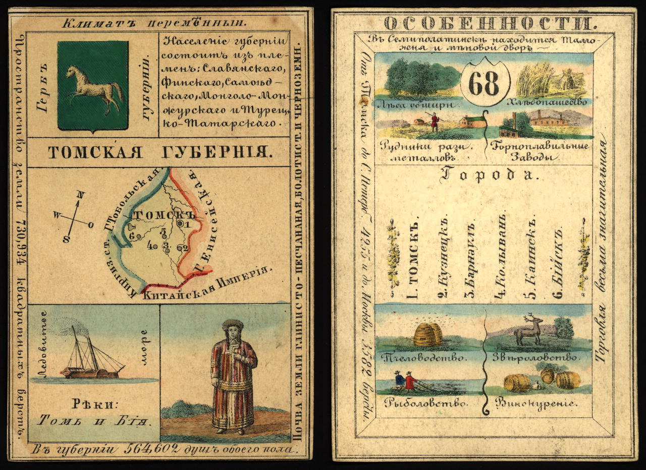 Cувенирный набор из восьмидесяти двух иллюстрированных карточек - одна на каждую область Российской Империи. На лицевой стороне каждой карточки размещена информация о населённых пунктах, географии, промышленности. На оборотной стороне — герб, карта, климат, природные ресурсы и население.