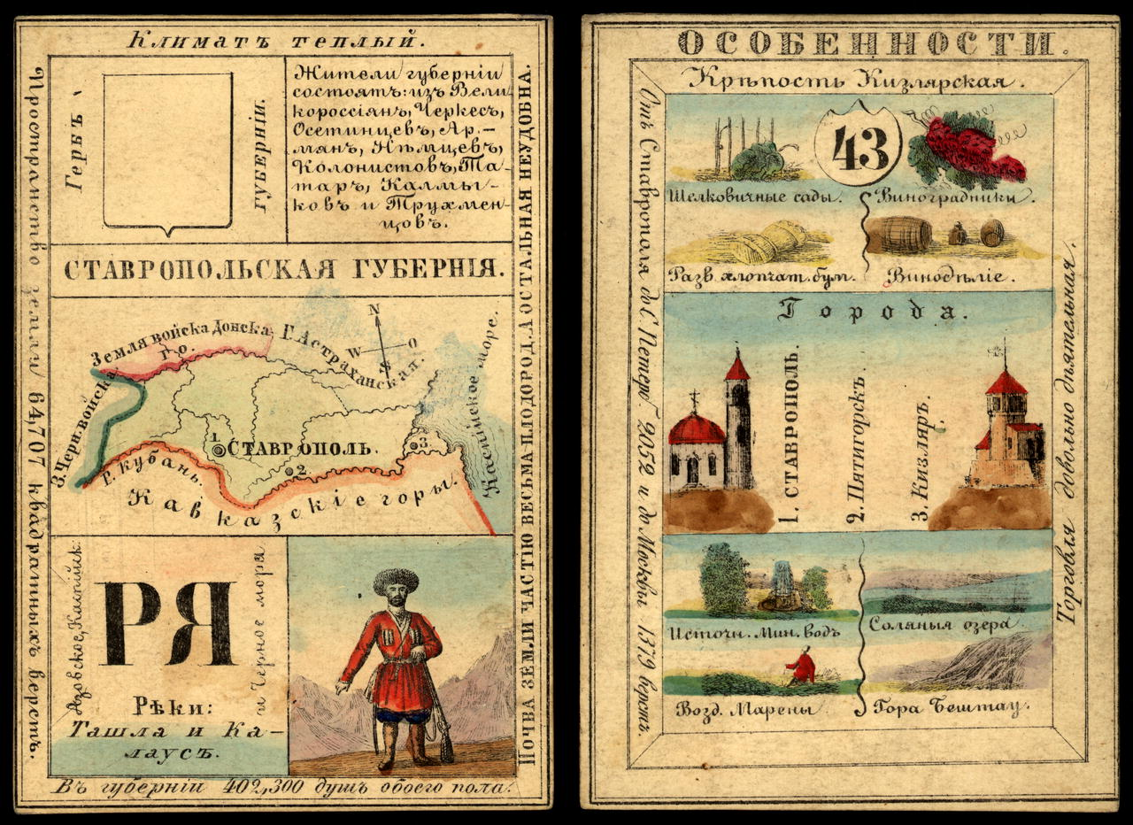 Ставропольская губерния - административная единица Российской империи. Граничила с Кубанской областью на западе, с Землёй Войска Донского и Астраханской губернией на севере и с Терской областью на юге и востоке. Наибольшая длина с северо-запада на юго-восток — 472 км (442 версты), наибольшая ширина — 216 км (202 версты). Ставропольская губерния лежала между 44°6' и 46°35' северной широты. Площадь её — 60600 км? (53246 кв. вёрст).