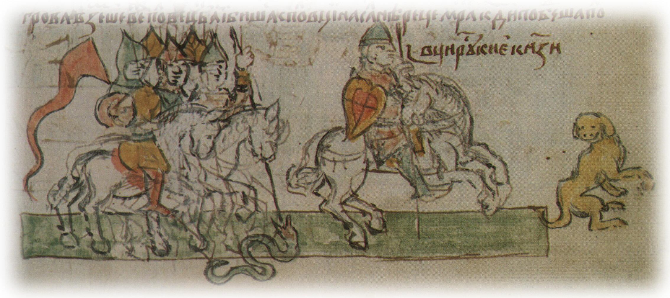 Сизов В. И. Миниатюры Кенигсбергской летописи // ИОРЯС. СПб., 1905. Т. 10. Кн. 1. с. 15; Артамонов М. И. Миниатюры Кенигсбергского списка летописи // Известия Государственной академии истории материальной культуры (далее: ГАИМК). Л., 1931. Т. 10. Вып. 1. с. 23; Подобедова О. И. Миниатюры русских исторических рукописей. К истории русского лицевого летописания. М., 1965. с. 74; Рыбаков Б. А. “Слово о полку Игореве” и его современники. М., 1971. V с. 215.