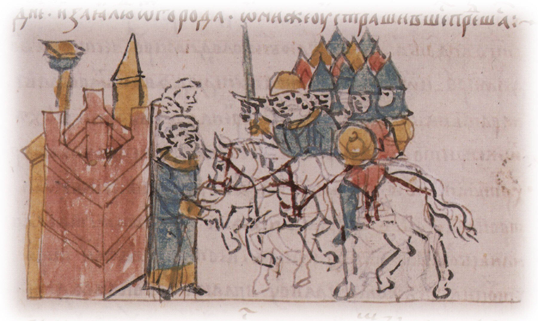 Подступ к Логожску Изяслава Мстиславича Курского с полком и сдача жителями города.
