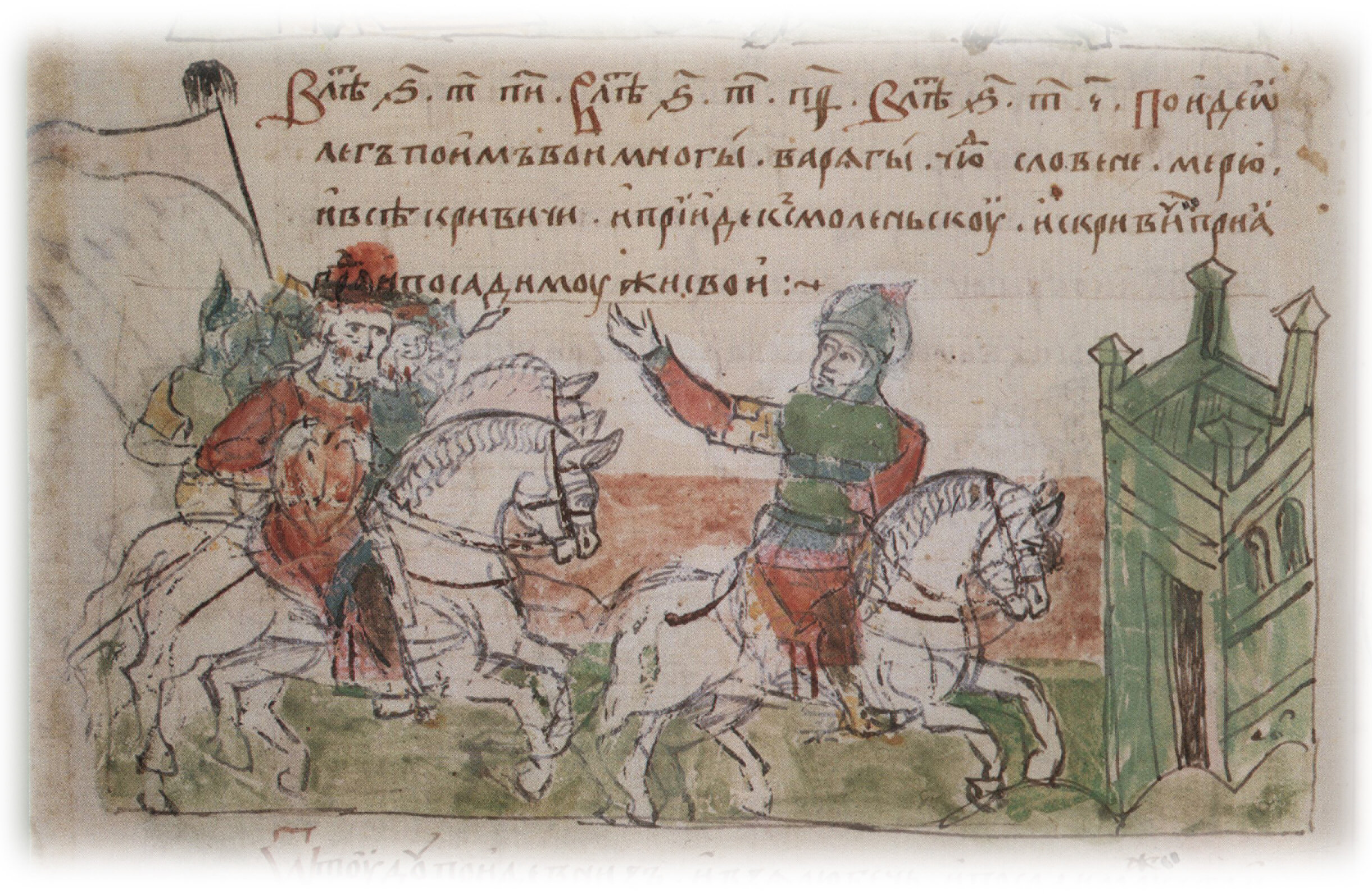 "В лето 6390. Поиде Олег, поим вои многы: варягы, чюдь, словене, мерю и все кривичи, и прииде к Смоленьску..."