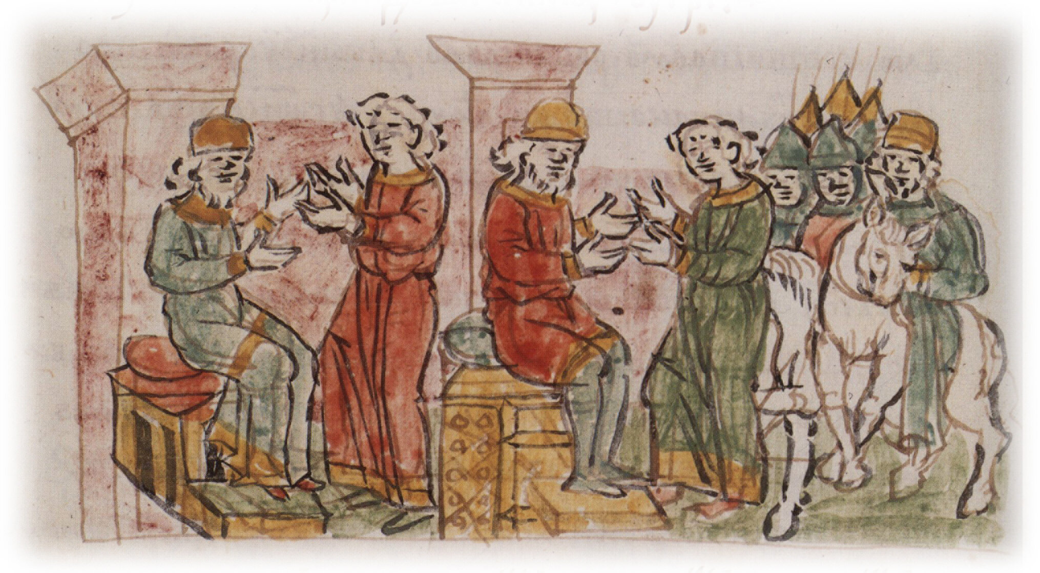 "Гургу же гневаючюся на нь, не хотящу ему дати волости. Изяслав же посла по угры и по ляхи. На ту же весну приидоша к нему угре".
