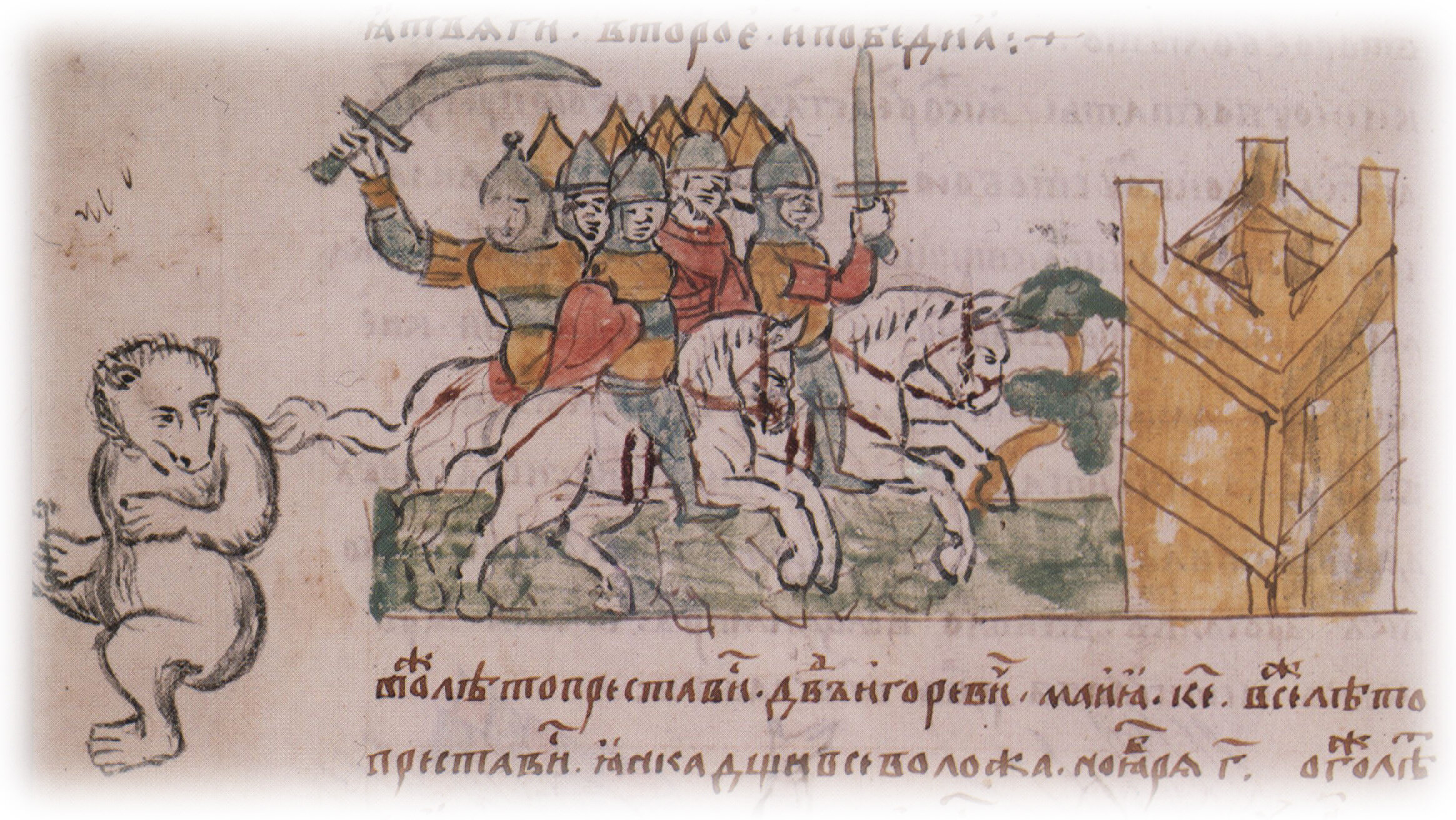 Сизов В. И. Миниатюры Кенигсбергской летописи // ИОРЯС. СПб., 1905. Т. 10. Кн. 1. с. 15; Арциховский А. В. Древнерусские миниатюры как исторический источник. М./1944. с. 26; Подобедова О. И. Миниатюры русских исторических рукописей. К истории русского лицевого летописания. М., 1965. с. 74; Рыбаков Б. А. “Слово о полку Игореве” и его современники. М., 1971. V с. 215.