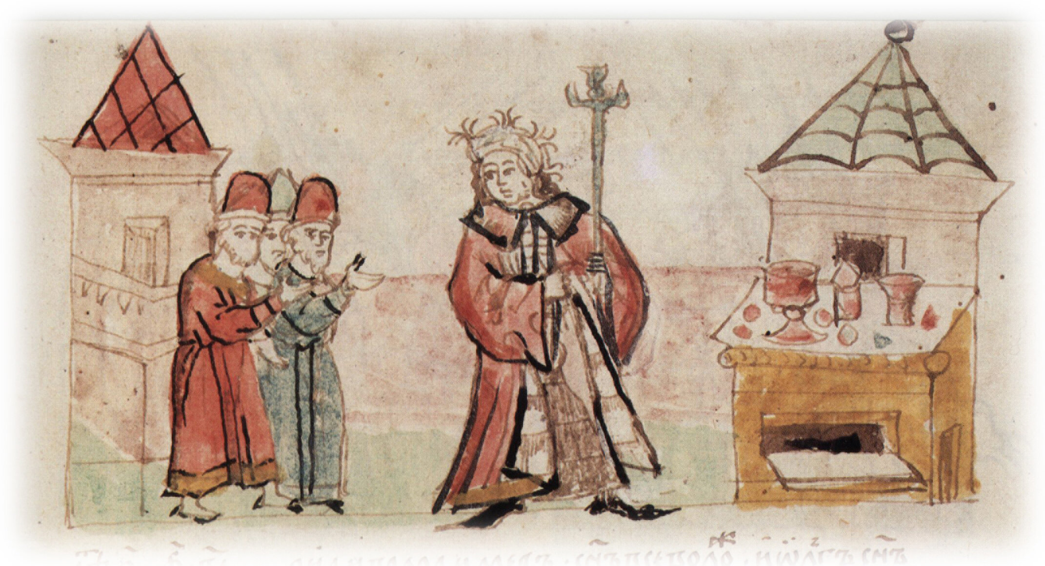 Варка киселя из болтушки и сыты в Белгороде в присутствии печенегов, пришедших с корчагами; испробование печенежскими князьями приготовленных кушаний, наличие которых в осажденном городе привело врагов в изумление и заставило снять осаду города.