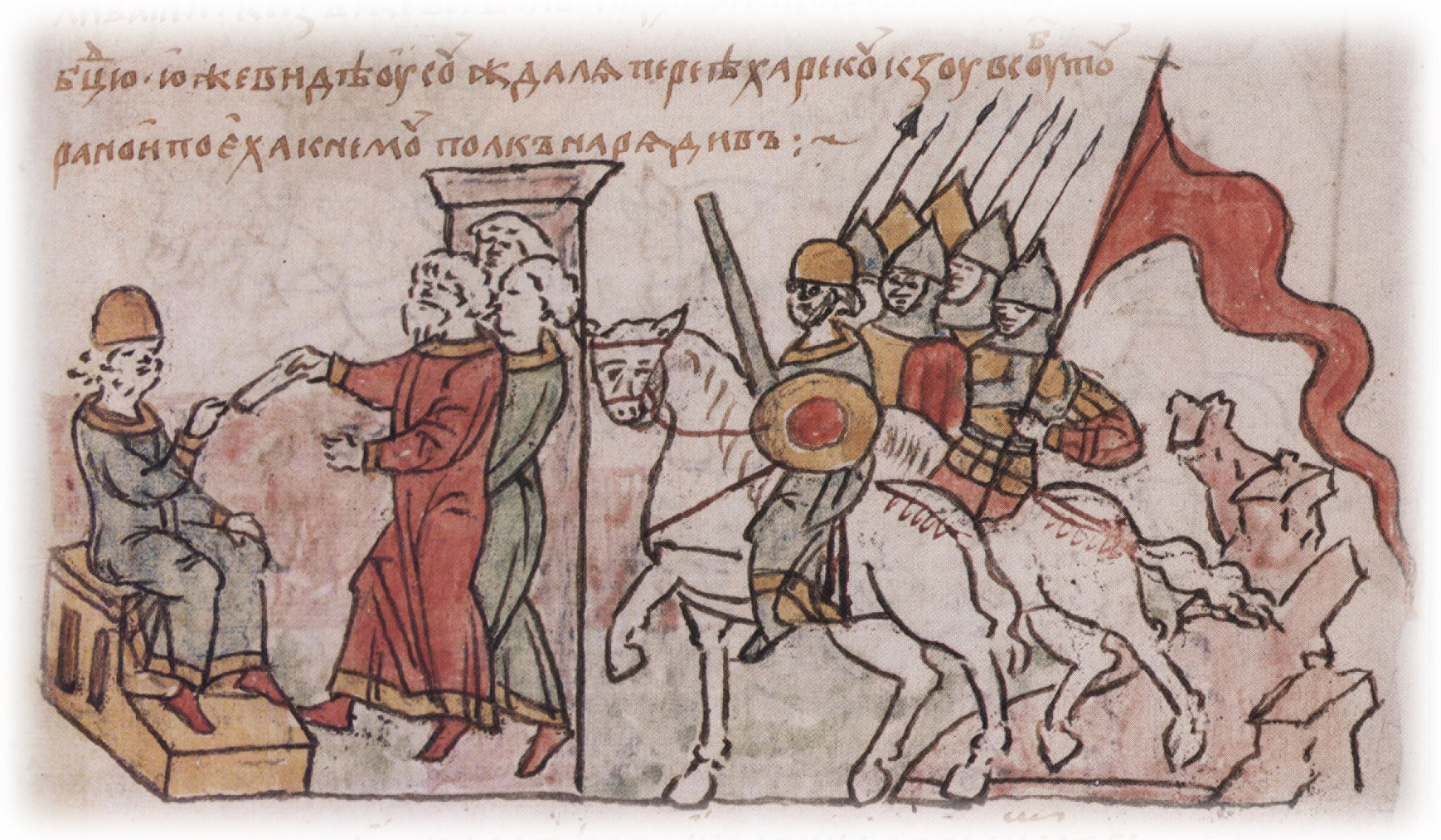"Они же рекоша: «Ты ему добра хочешь, а он главы твоеа ловить....... Князь же Всеволод надеяся на Бога... поеха к нему, полк нарядив".