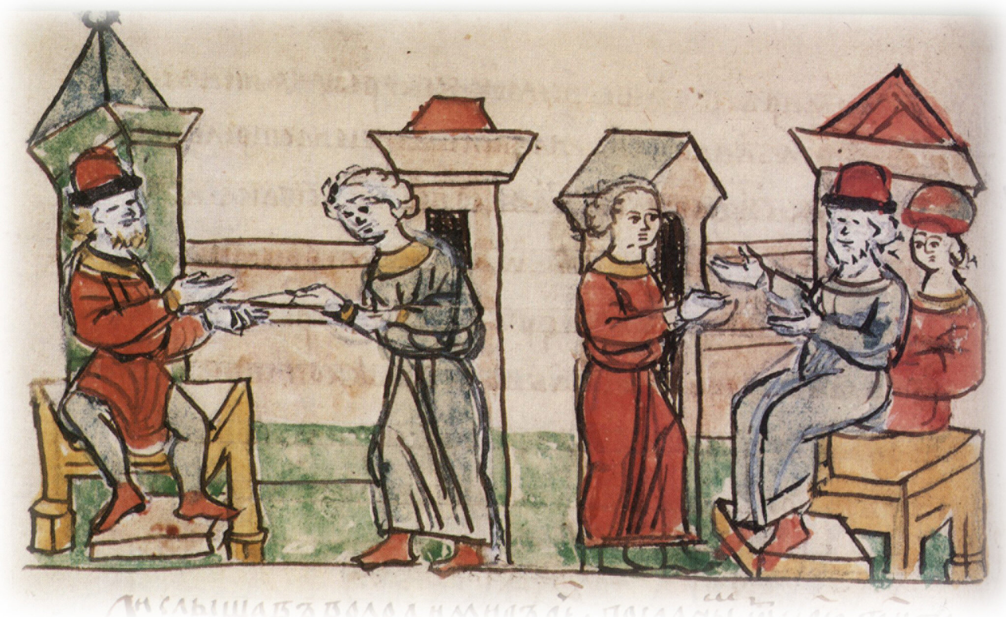 Варка киселя из болтушки и сыты в Белгороде в присутствии печенегов, пришедших с корчагами; испробование печенежскими князьями приготовленных кушаний, наличие которых в осажденном городе привело врагов в изумление и заставило снять осаду города.