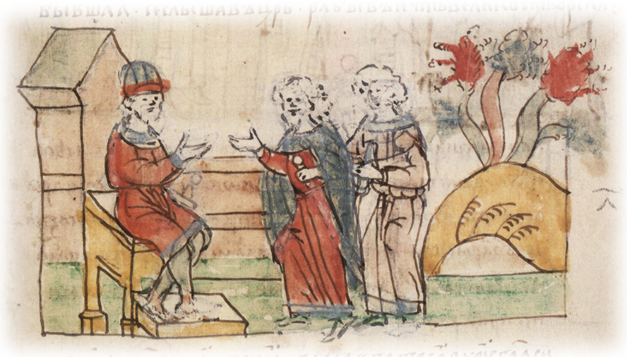 Прием Владимиром Святославичем русских послов, вернувшихся от болгар-магометан.