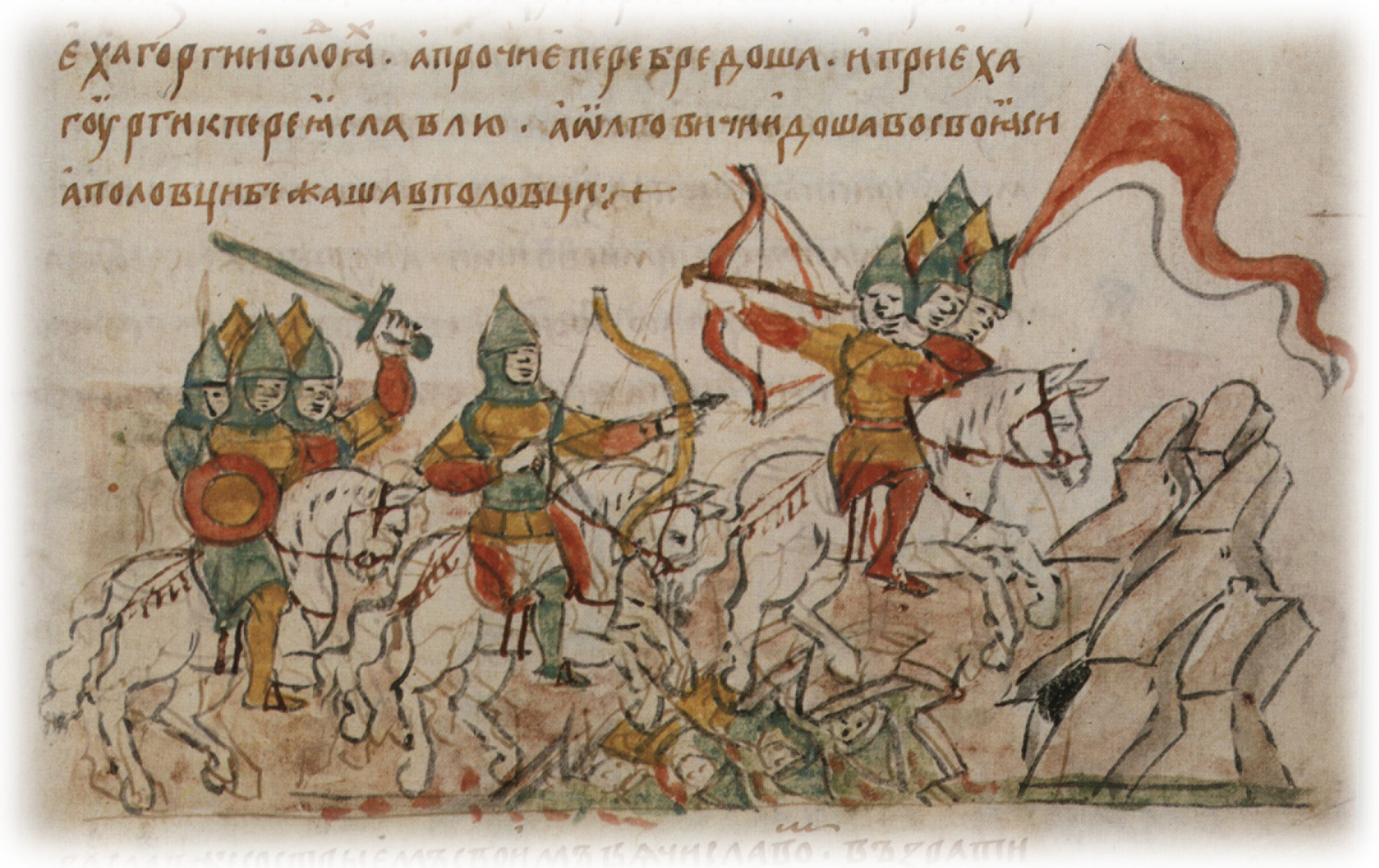 "Половци же Гургевы по стреле пустивше, побегоша, а потом Олговичи, а потом Гургей с детми. Бежащим им чрес Руть много дружины истопе в Руту, бе бо грязок".