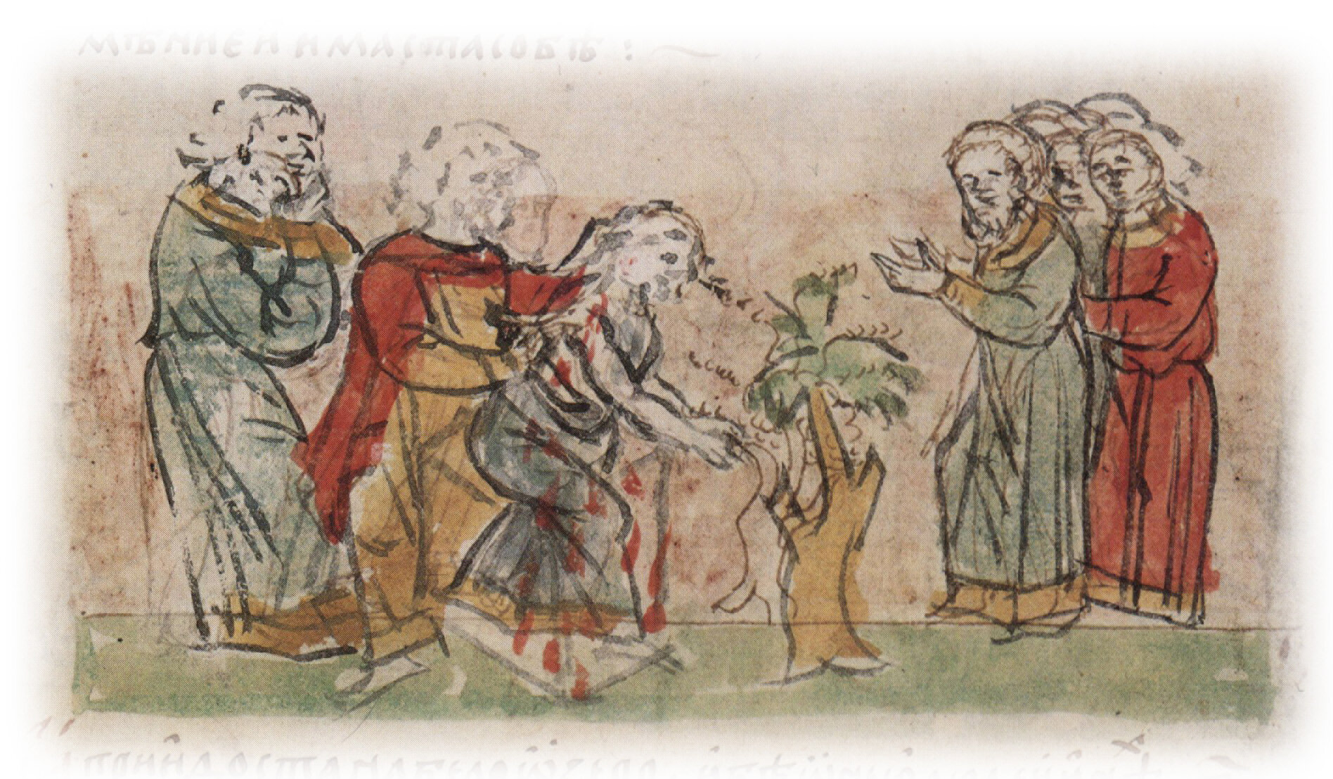 "И привожаху к нима сестры своя, и матери, и жены своя. Она же в мечте прорезываша за плечем, вынимаста любо жыто, любо рыбу, и убивашата многы жены, и имение их имаста собе".