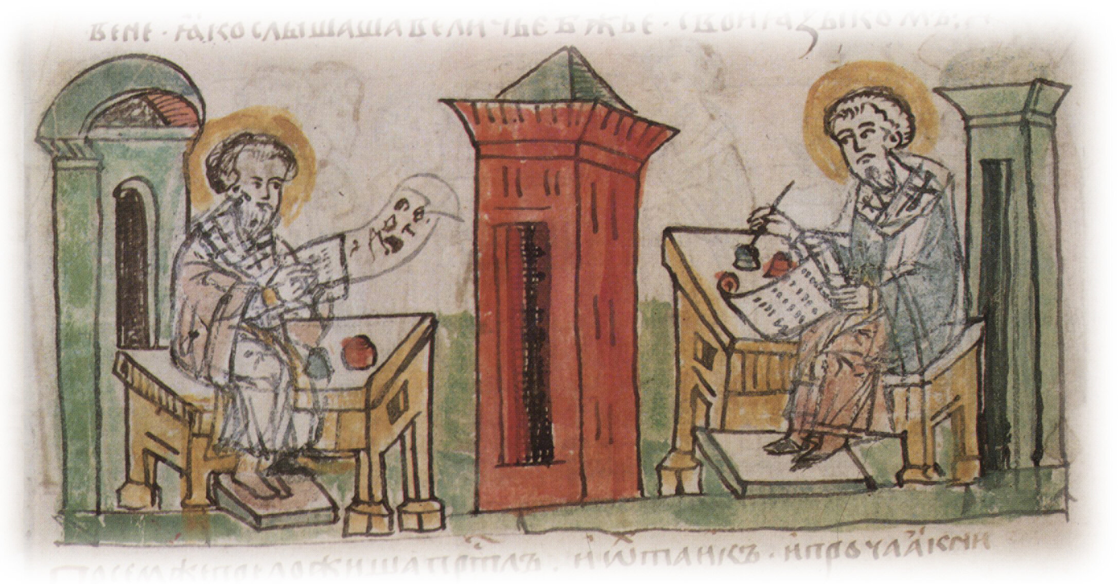 "Сима же пришедшима, начаста составливати писмена азбуковнаа словеньскы, и прело-жиста Апостол и Еуангелие...".