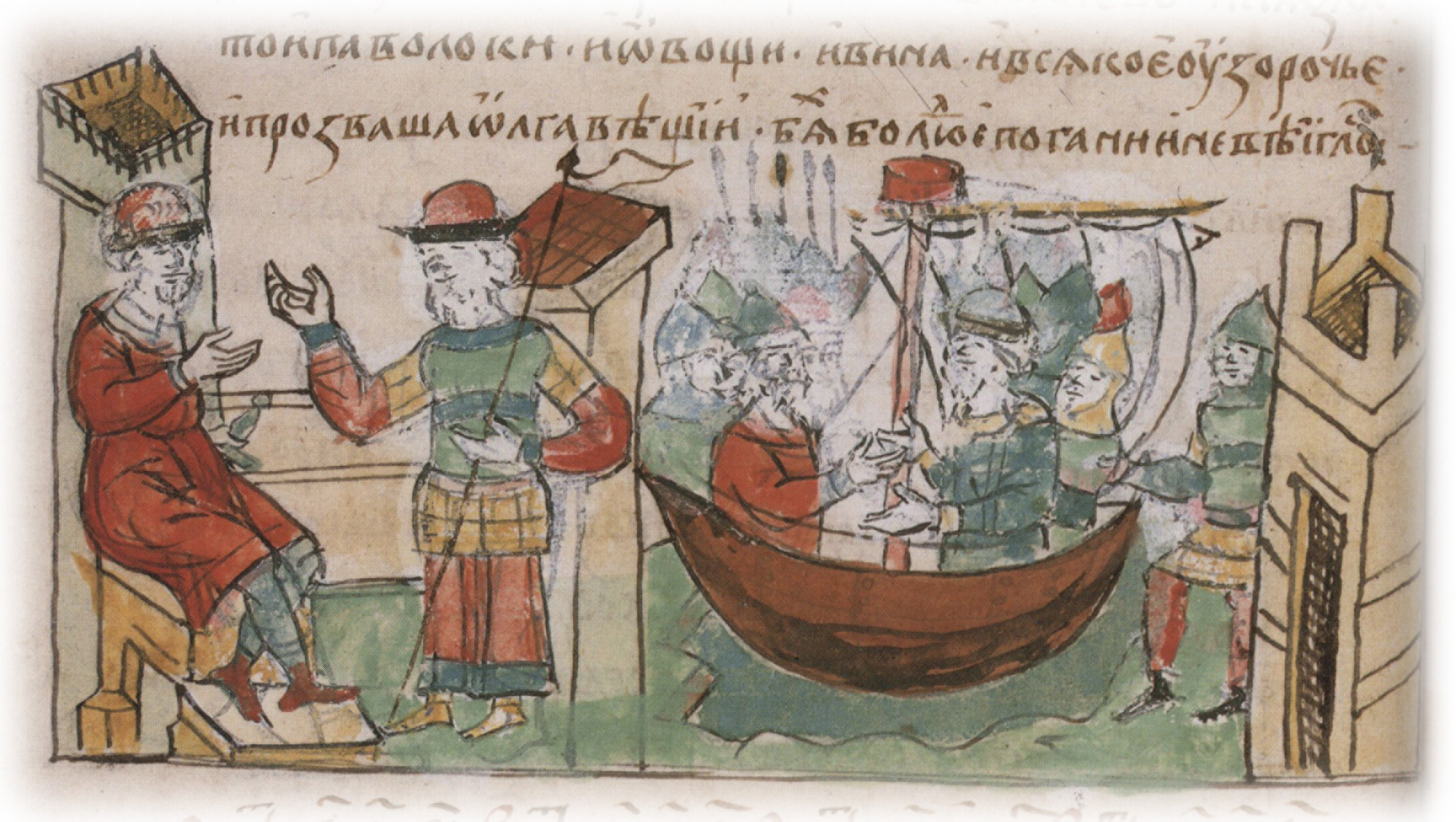 "И приде Олег к Киеву, неся злато, и паволоки, и овощи, и вина, и всякое узорочье. И прозваша Олга вещий..."