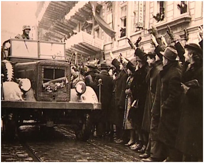 Богемские немцы приветствуют вступление в Прагу германских войск. Март 1939 г.