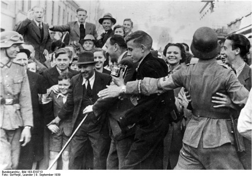 Немецкое население г. Лодзь радостно приветствует германских солдат. Сентябрь 1939 г.