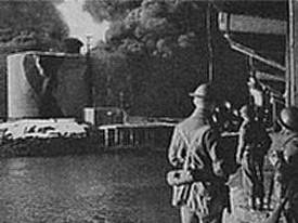 Британские и норвежские диверсанты сжигают завод на Лофонтенских островах. 4 марта 1941 г.