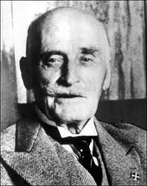 Кнут Гамсун (на лацкане пиджака значок фашистской партии «Национальное собрание»)