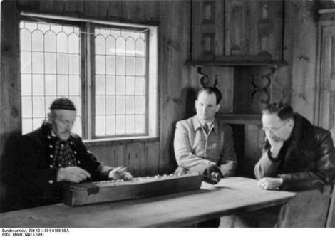 Рейхсфюрер СС Генрих Гиммлер (Heinrich Luitpold Himmler) слушает народного исполнителя на традиционных гуслях-langeleik. Норвегия, 1941 г.