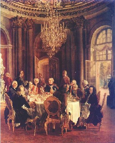 Король Пруссии Фридрих II, прославившийся не только военными успехами, но и своим покровительством наукам. А. фон Менцель. За круглым столом. Философы при дворе Фридриха Великого
