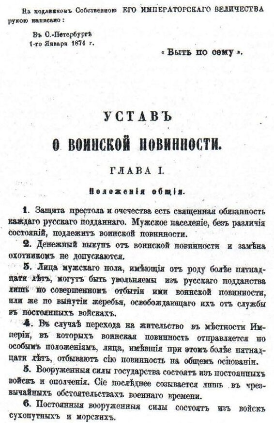 Первая страница Устава о воинской повинности