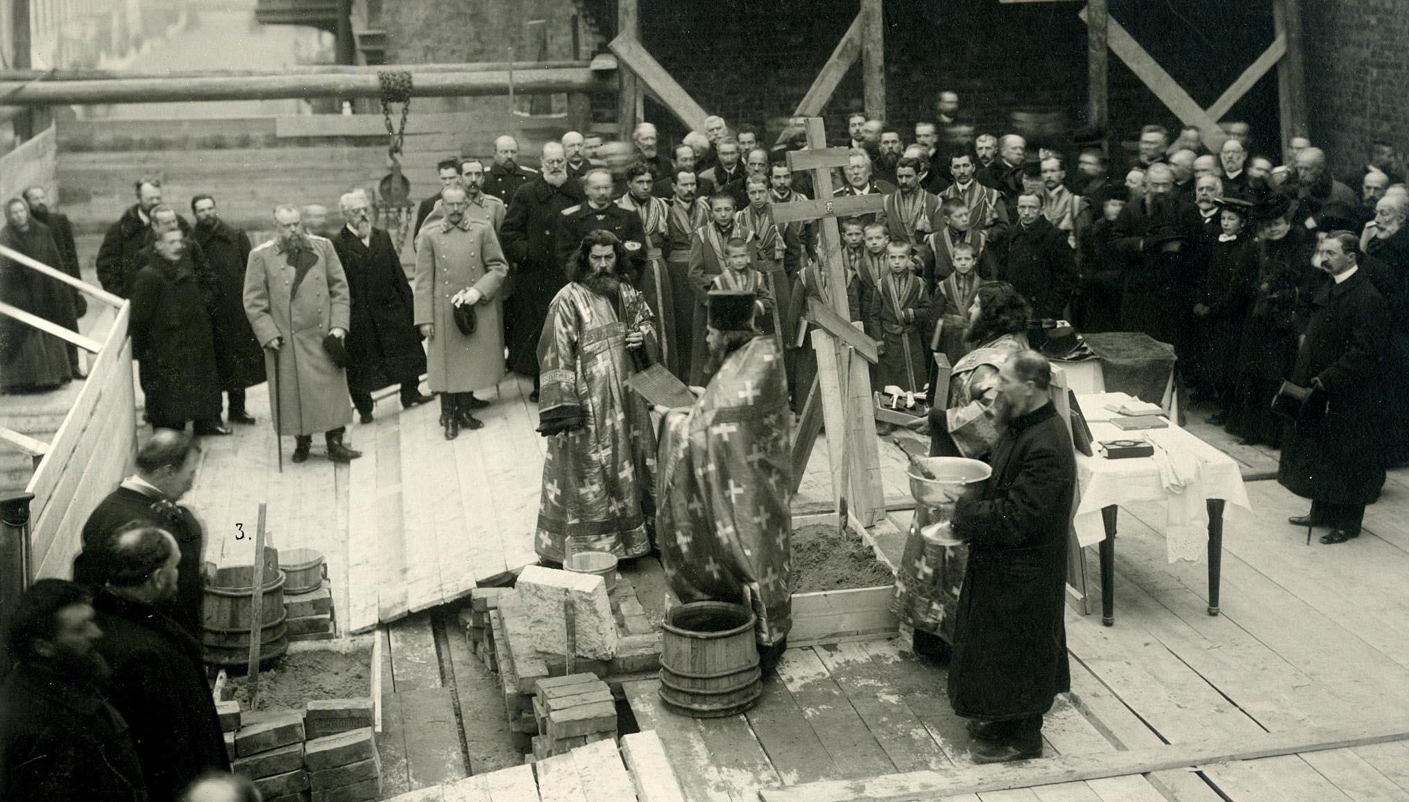 Церемония освящения закладки здания Императорского Русского Географического общества 21 октября 1907 г.